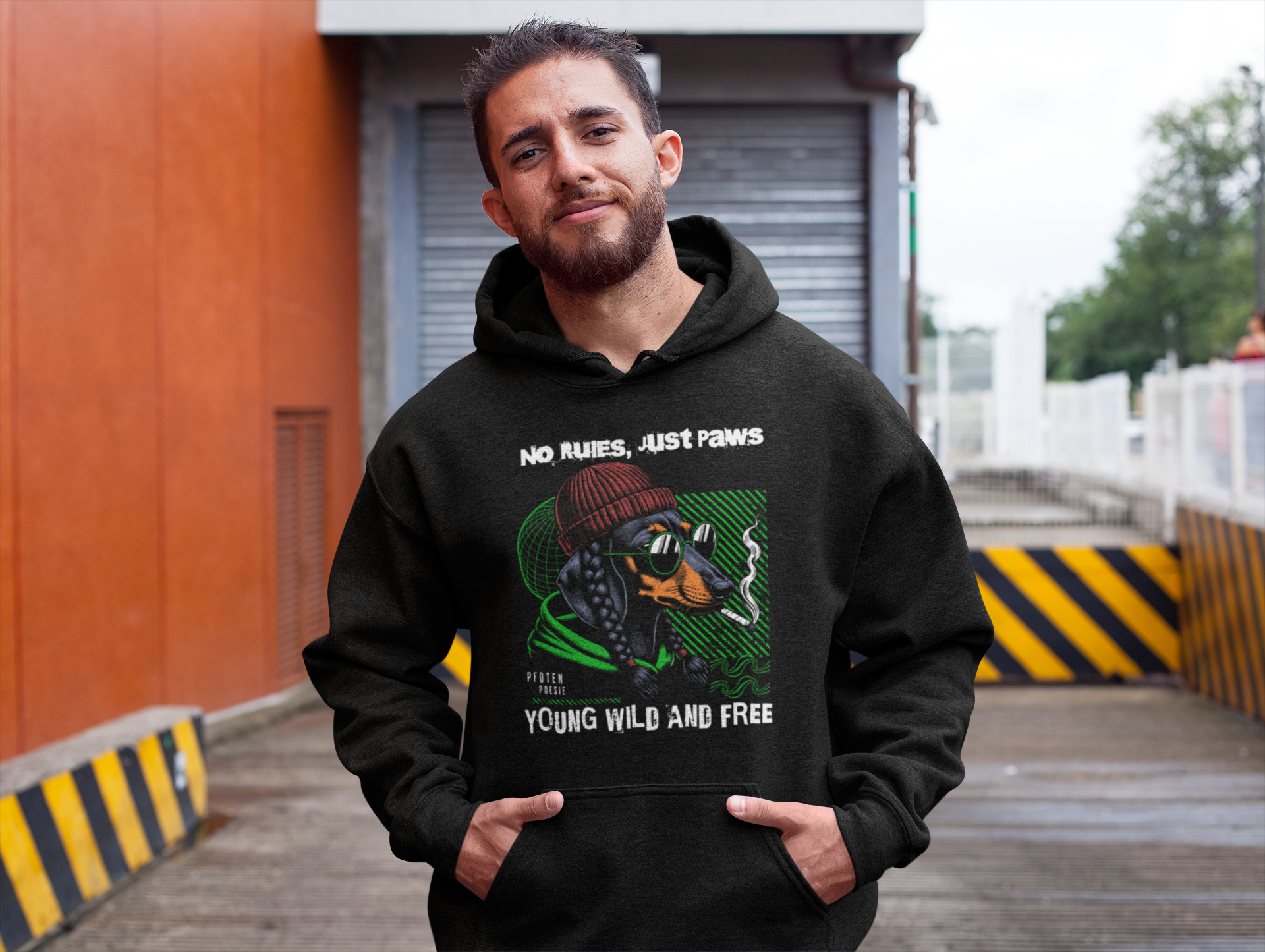 Dieses coole Hoodie bringt den rebellischen Charme deines tierischen Lieblings auf den Punkt. Mit dem frechen Dackel im urbanen Style ist es das perfekte Statement für alle, die ihren eigenen Weg gehen – frei, wild und voller Lebensfreude.