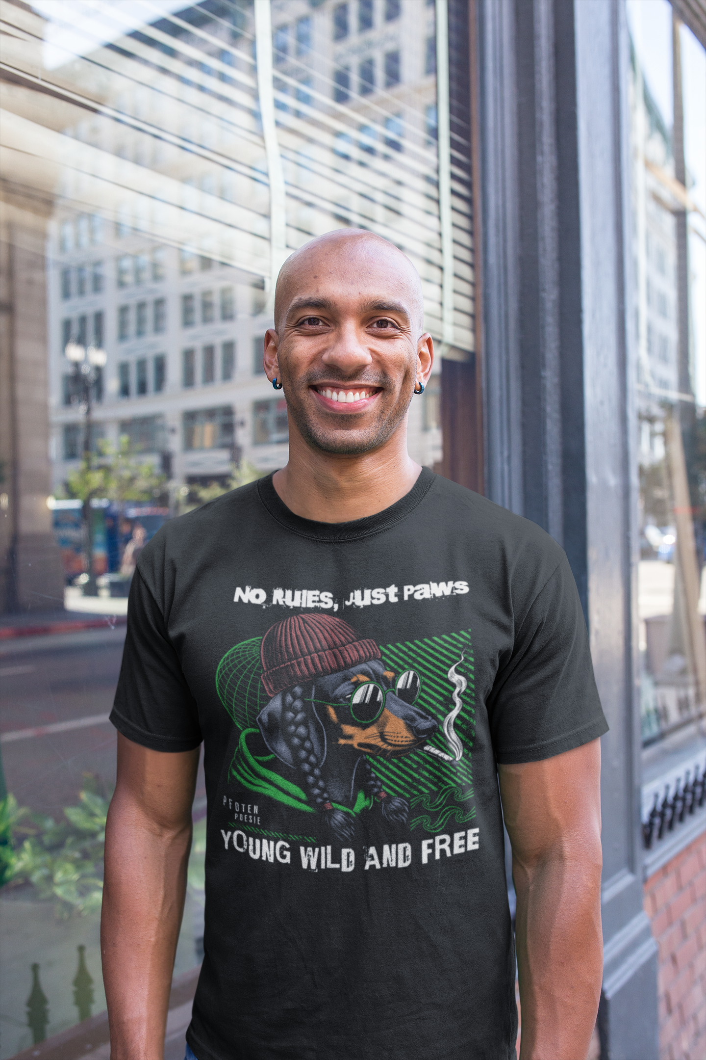 Unser coole T-Shirt bringt den rebellischen Charme deines tierischen Lieblings auf den Punkt. Mit dem frechen Dackel im urbanen Style ist es das perfekte Statement für alle, die ihren eigenen Weg gehen – frei, wild und voller Lebensfreude.