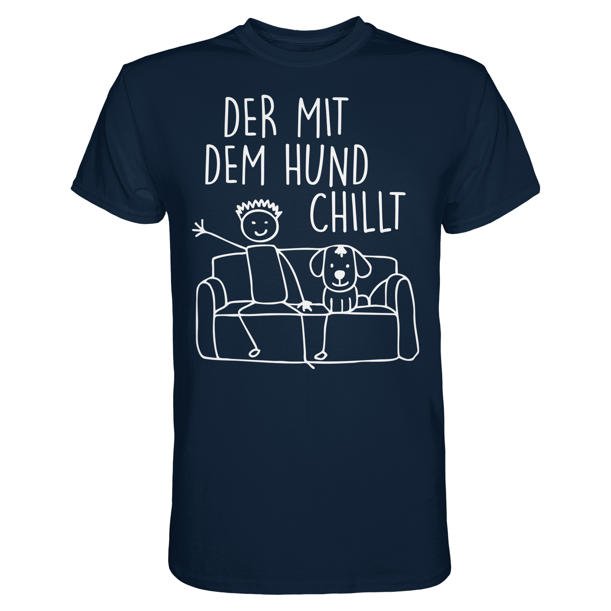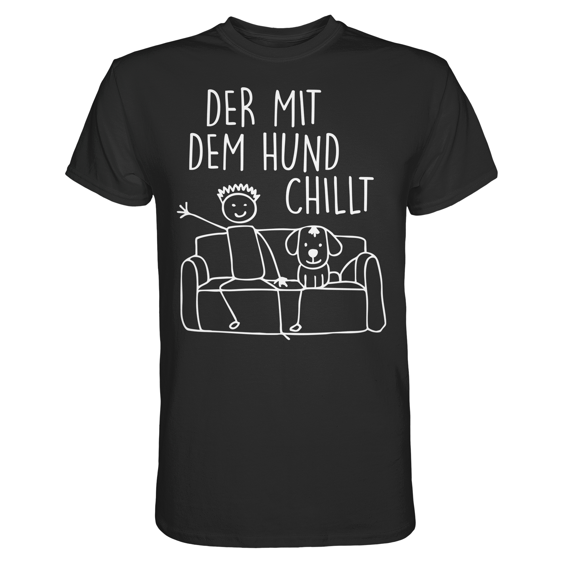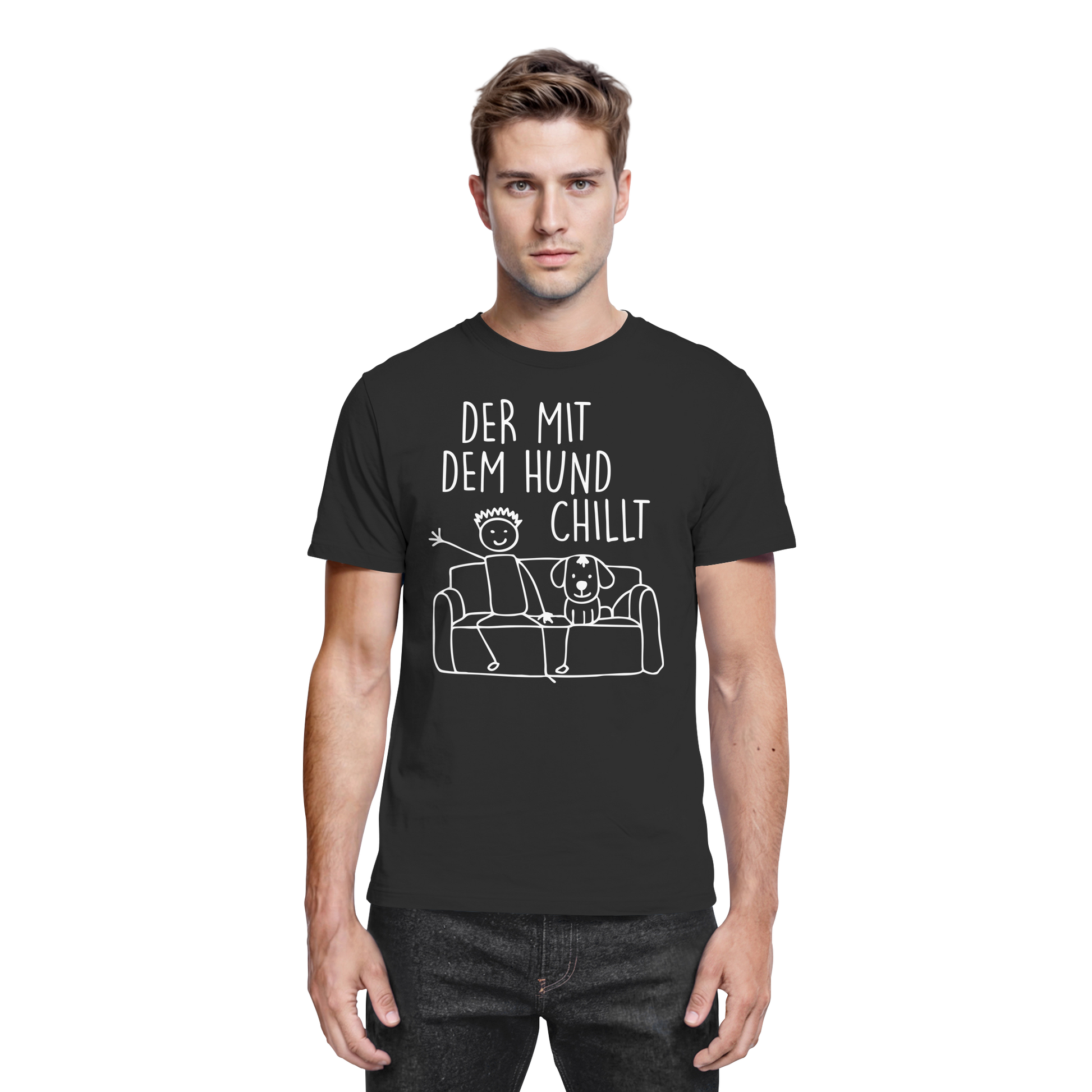 Ob beim gemütlichen Gassi-Spaziergang oder beim Entspannen auf der Couch – mit dem Shirt „Der mit dem Hund chillt“ bist du immer perfekt angezogen.