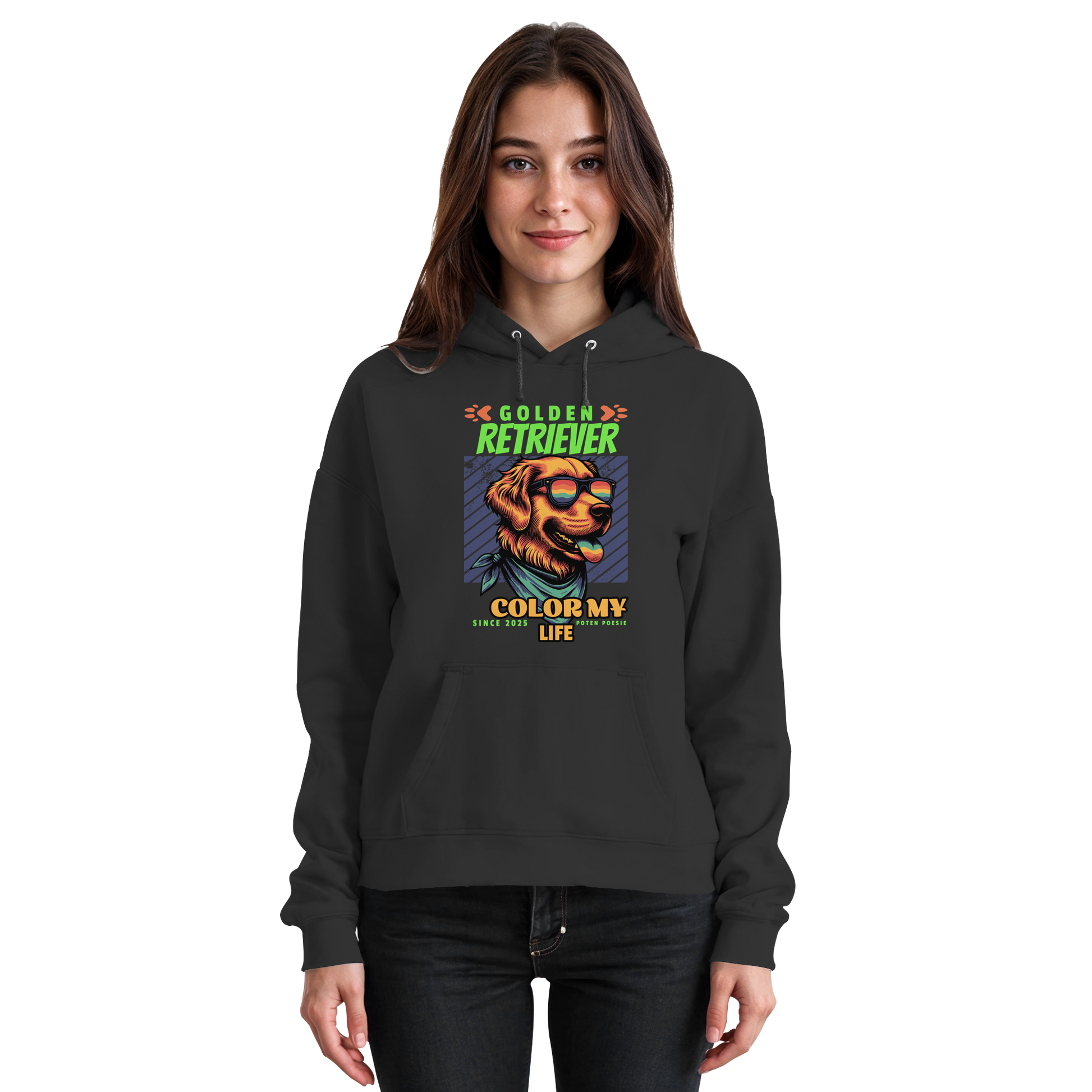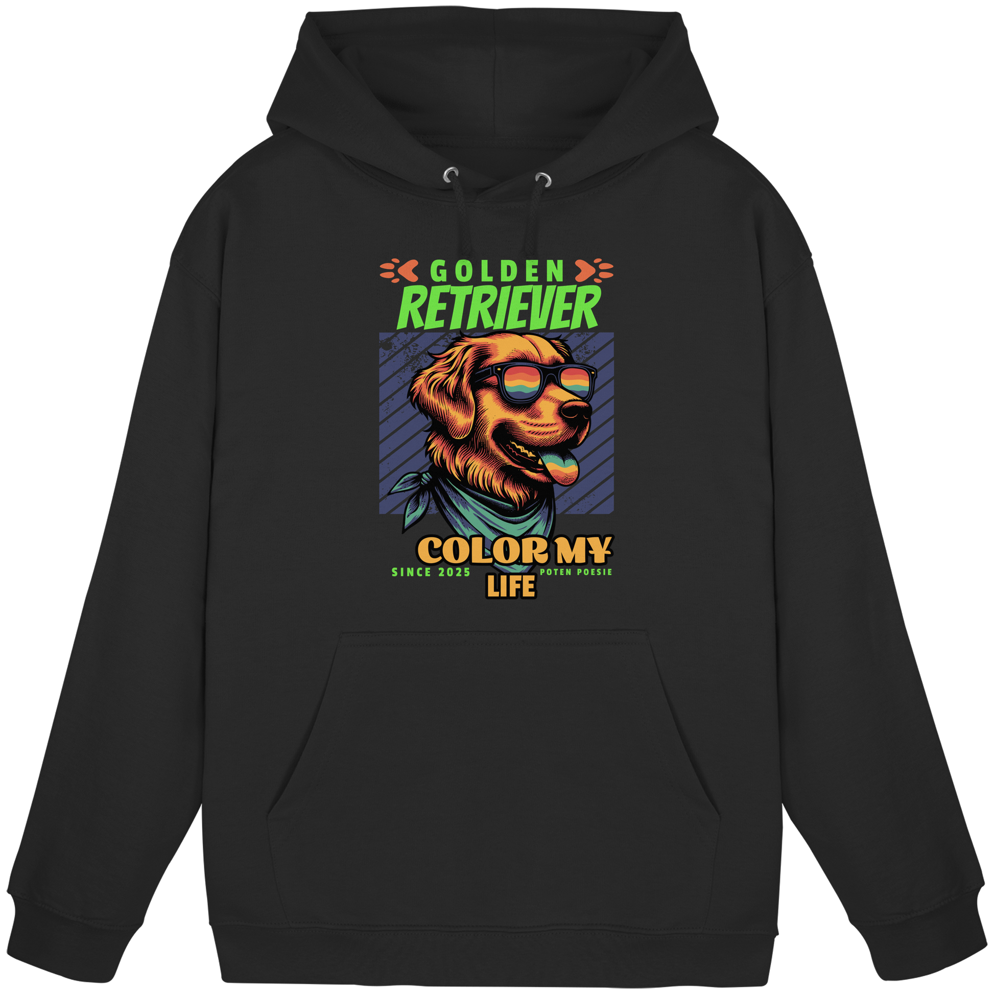 Dieser Hoodie bringt die sonnige Lebensfreude des Golden Retrievers direkt in deinen Alltag! Mit dem coolen Motiv und dem Spruch „Golden Retriever – Color My Life“ zeigst du, dass Hunde nicht nur Freunde, sondern echte Glücksbringer sind.