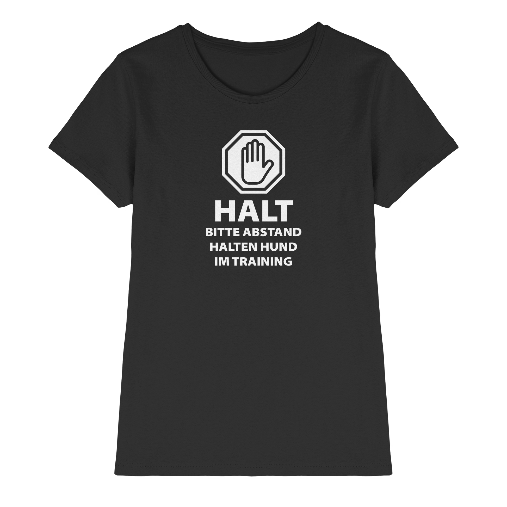 Mit dem Shirt „HALT Abstand halten, Hund im Training“ setzt du ein klares, freundliches Zeichen: Bitte Rücksicht nehmen.
