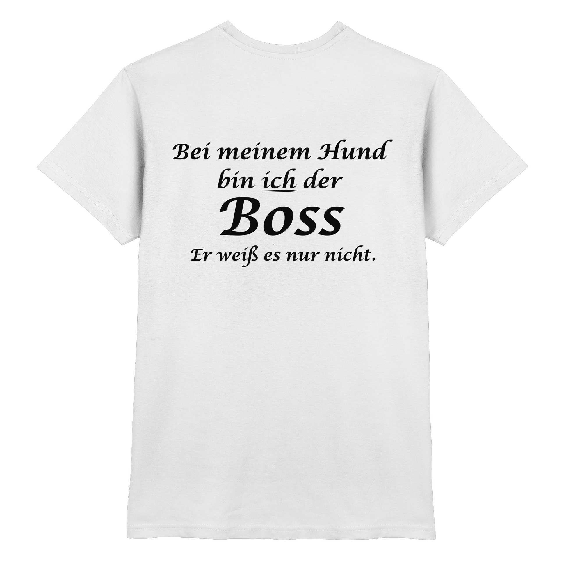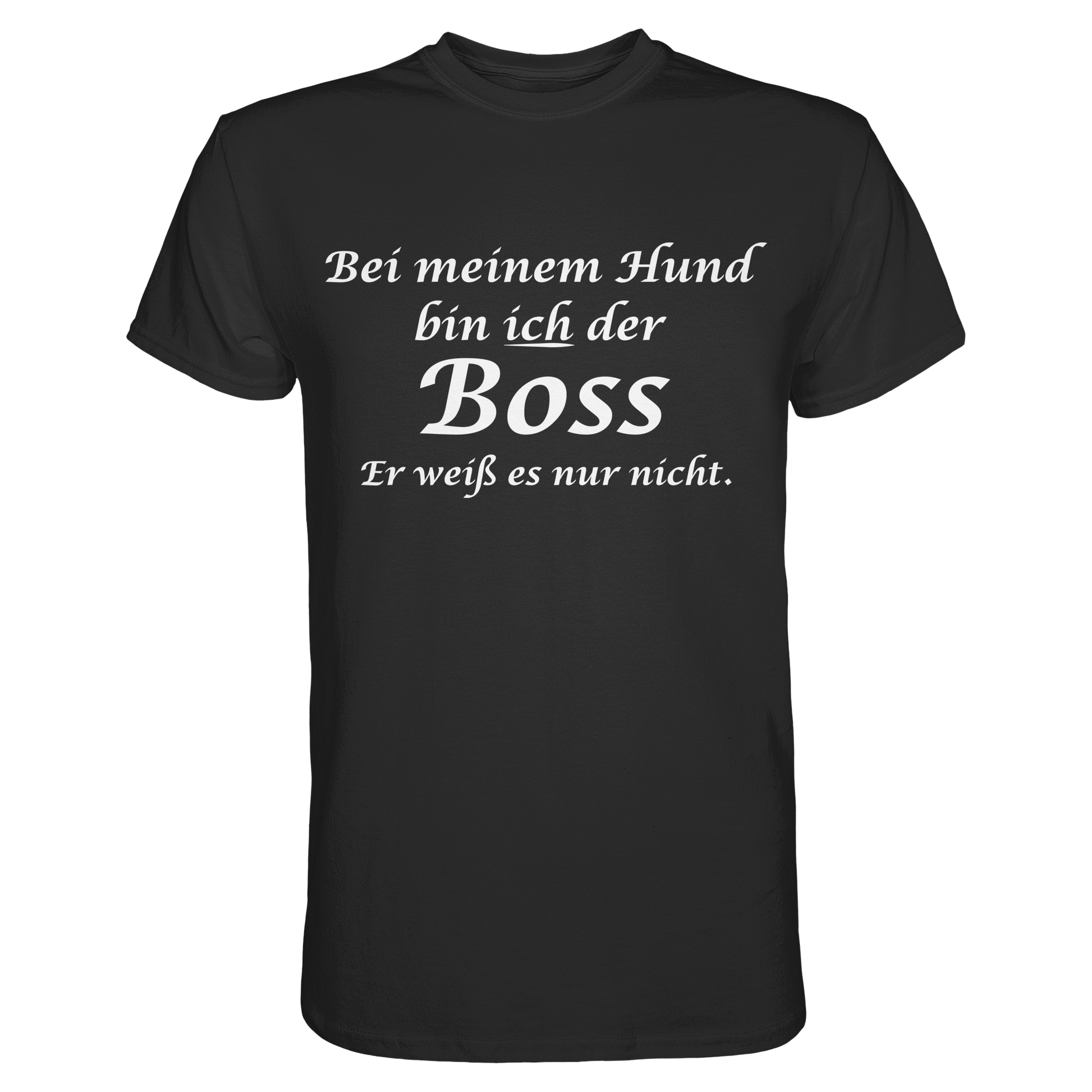 Mit dem Shirt „Bei meinem Hund bin ich der Boss – er weiß es nur nicht“ zeigst du mit Humor und Herz, wie einzigartig das Zusammenleben mit deinem Vierbeiner ist. Perfekt für Spaziergänge, gemütliche Stunden Zuhause oder einfach, um anderen Hundemenschen ein Lächeln ins Gesicht zu zaubern. Eignet sich Perfekt als Geschenk für alle Hundemenschen. Hol dir jetzt das Shirt „Bei meinem Hund bin ich der Boss – er weiß es nur nicht“ – nur solange verfügbar.