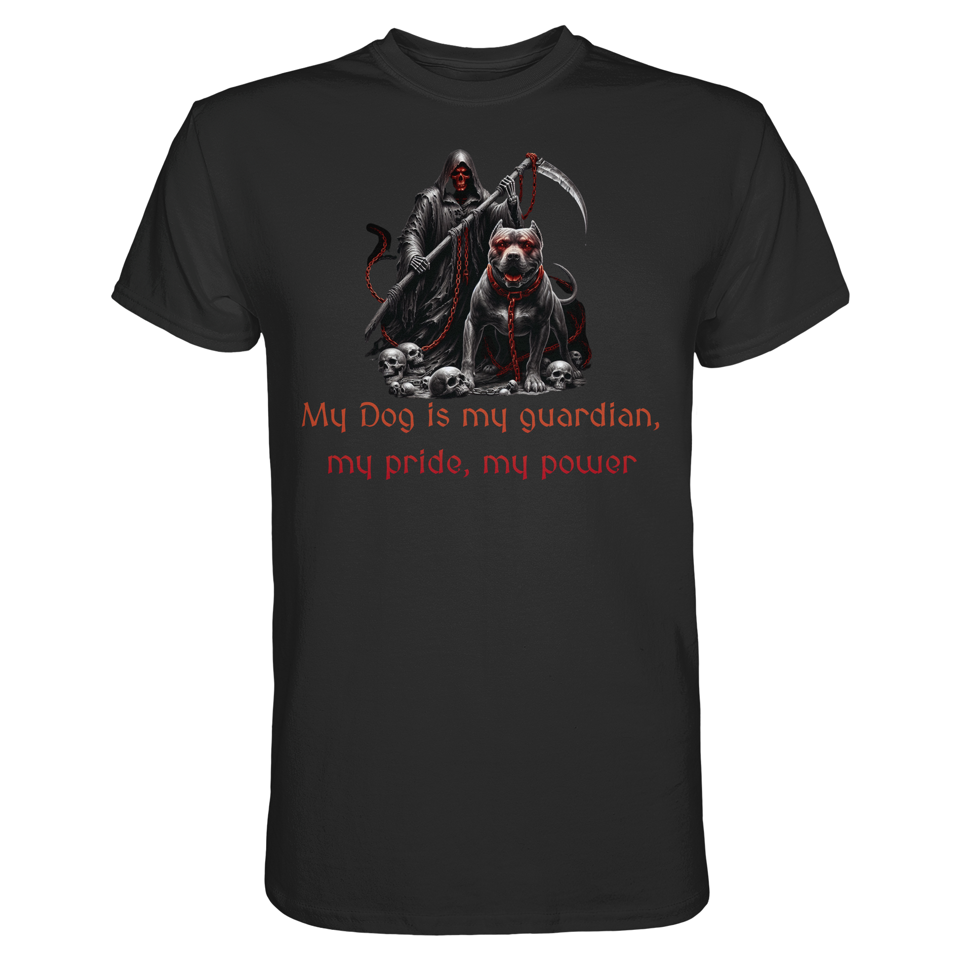 Das kraftvolle Design mit dem furchtlosen Hund im Vordergrund zeigt, was Treue, Schutz und unerschütterliche Stärke wirklich bedeuten. Dein Hund ist nicht nur ein Tier – er ist dein Wächter, dein Stolz und deine unbesiegbare Kraftquelle.