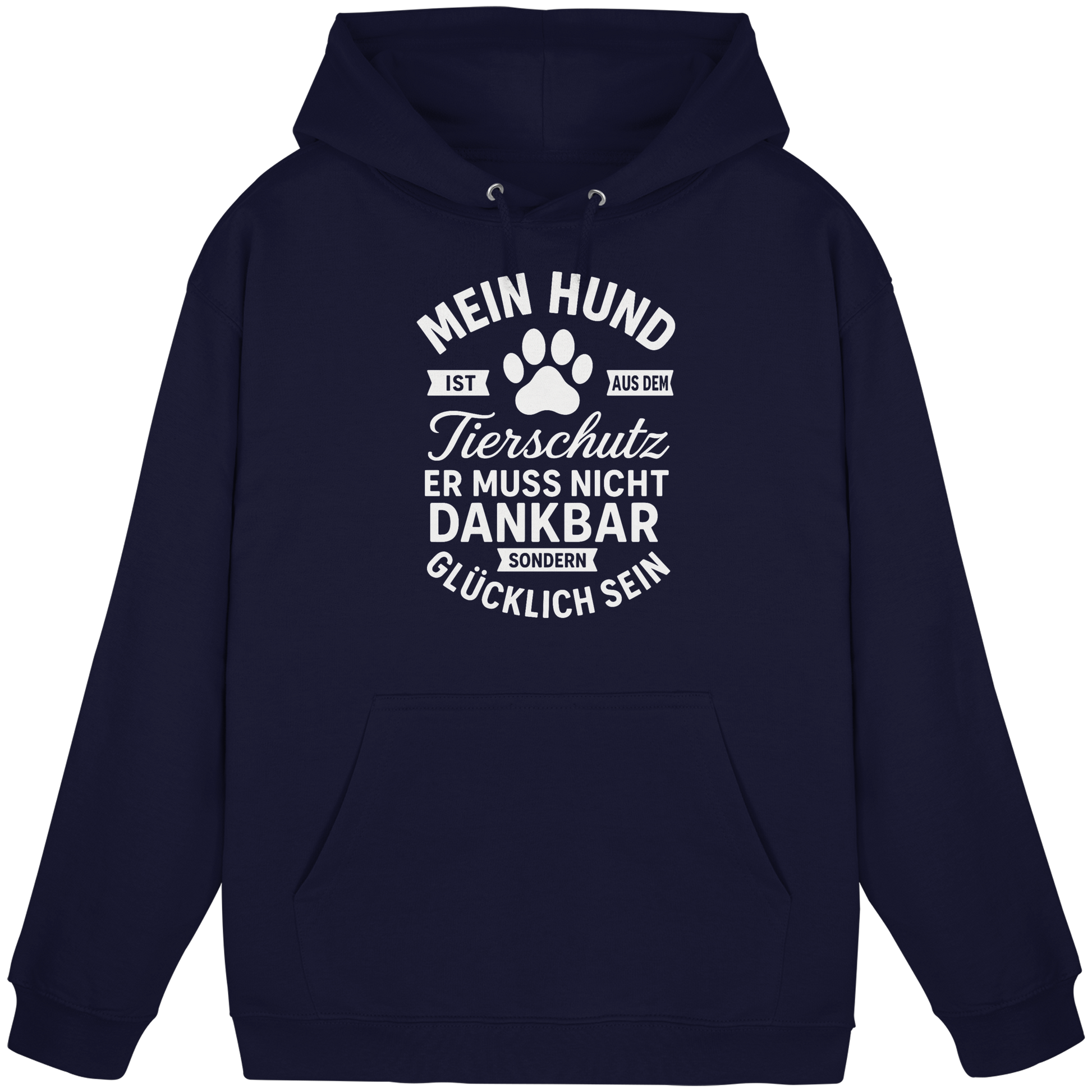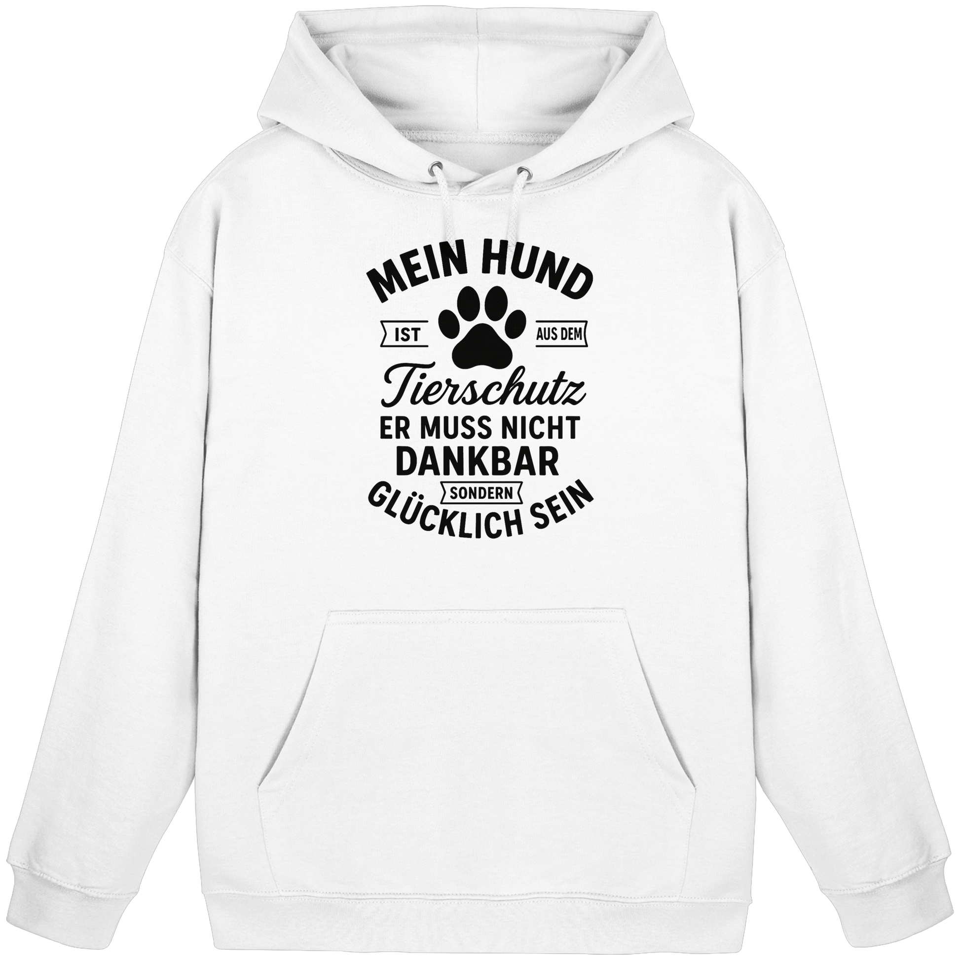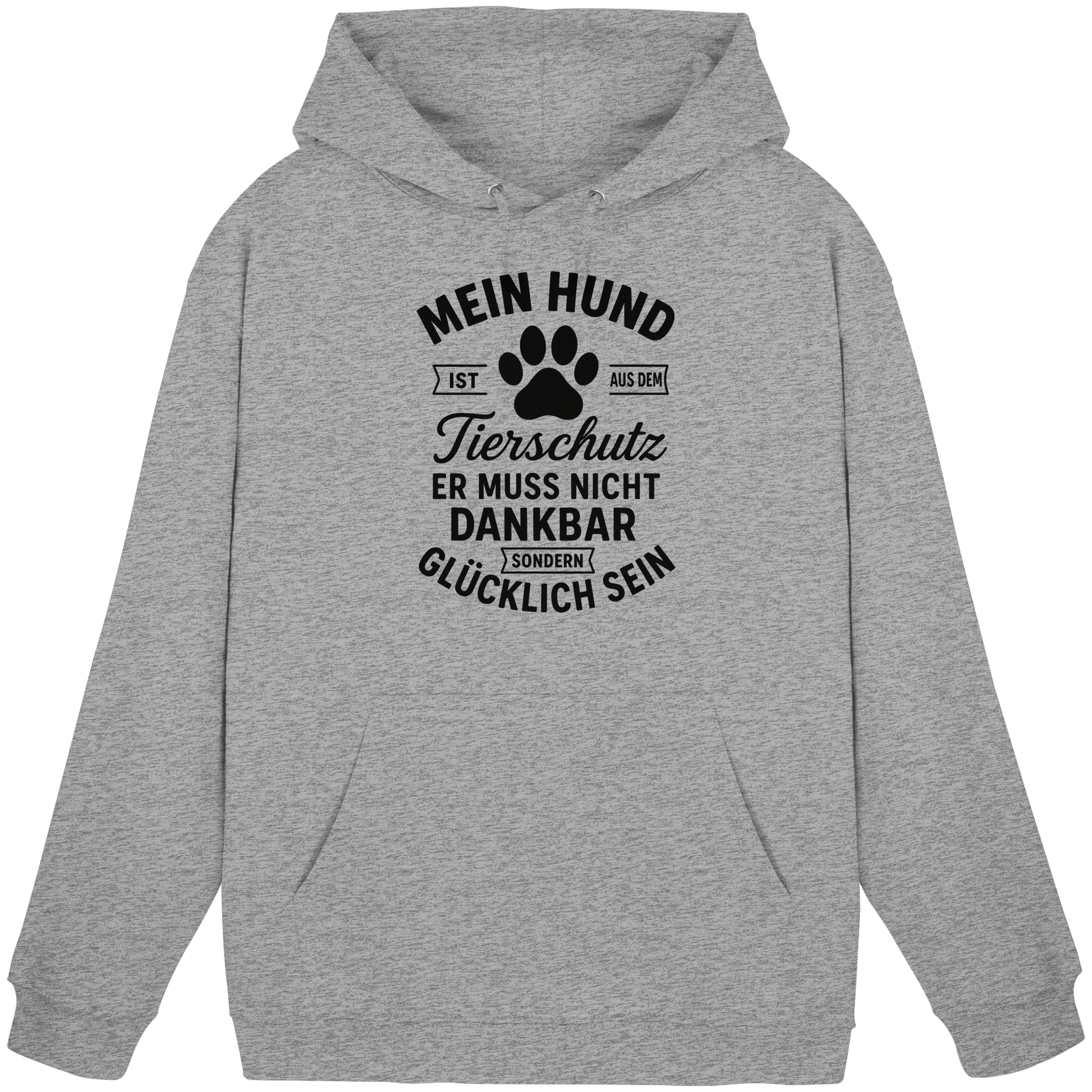 Mit unserem Hoodie „Mein Hund ist aus dem Tierschutz – er muss nicht dankbar, sondern glücklich sein“ zeigst du, dass jedes Tier ein Recht auf Liebe, Sicherheit und ein glückliches Leben hat.