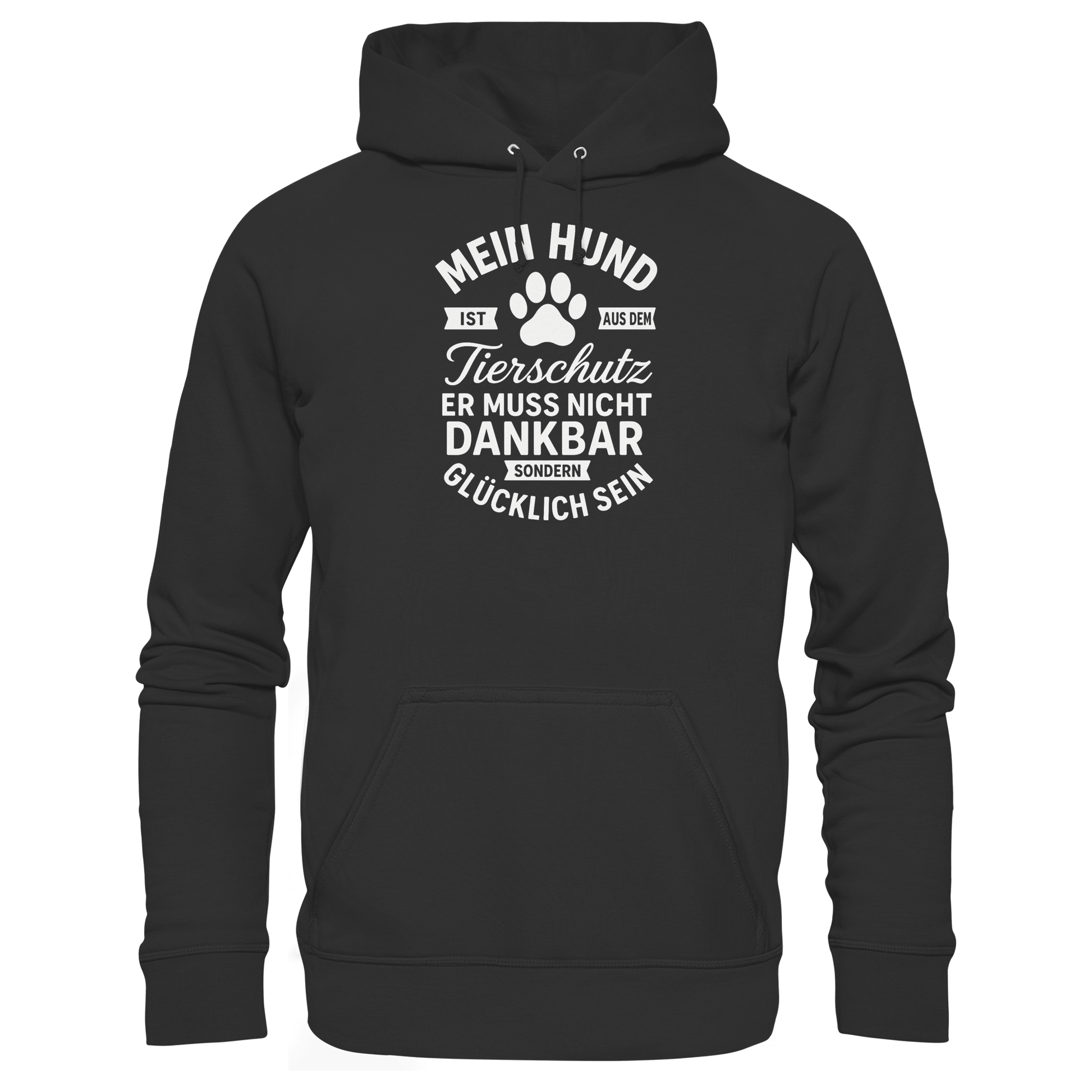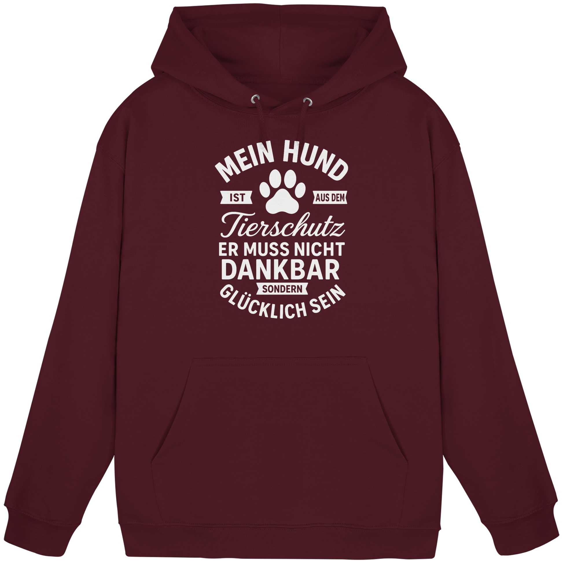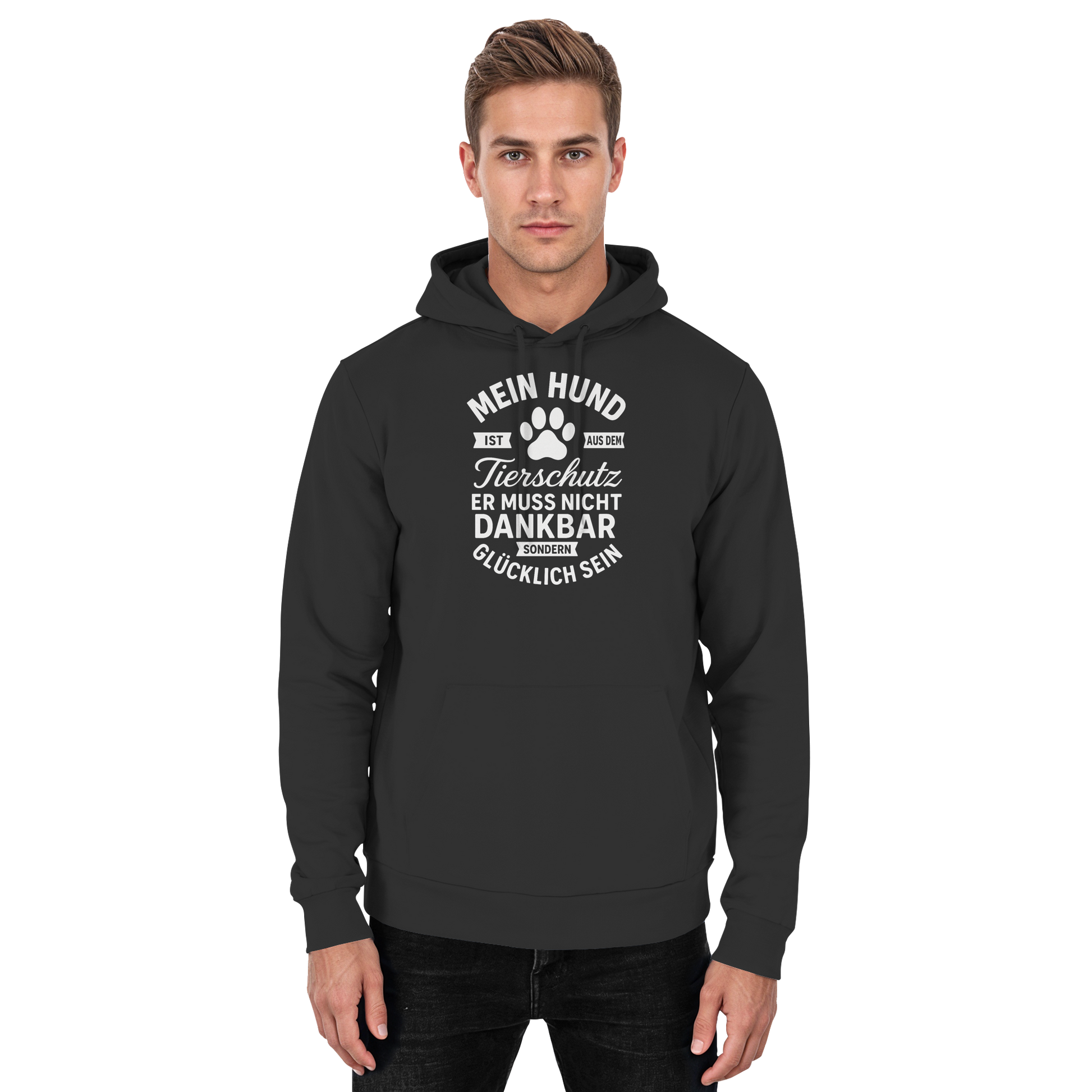 Mit unserem Hoodie „Mein Hund ist aus dem Tierschutz – er muss nicht dankbar, sondern glücklich sein“ zeigst du, dass jedes Tier ein Recht auf Liebe, Sicherheit und ein glückliches Leben hat.