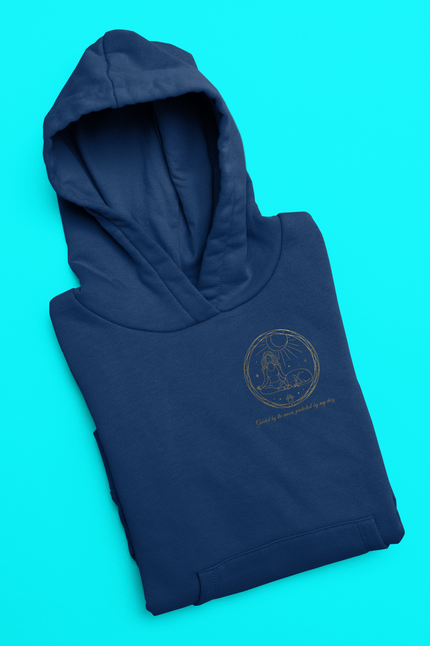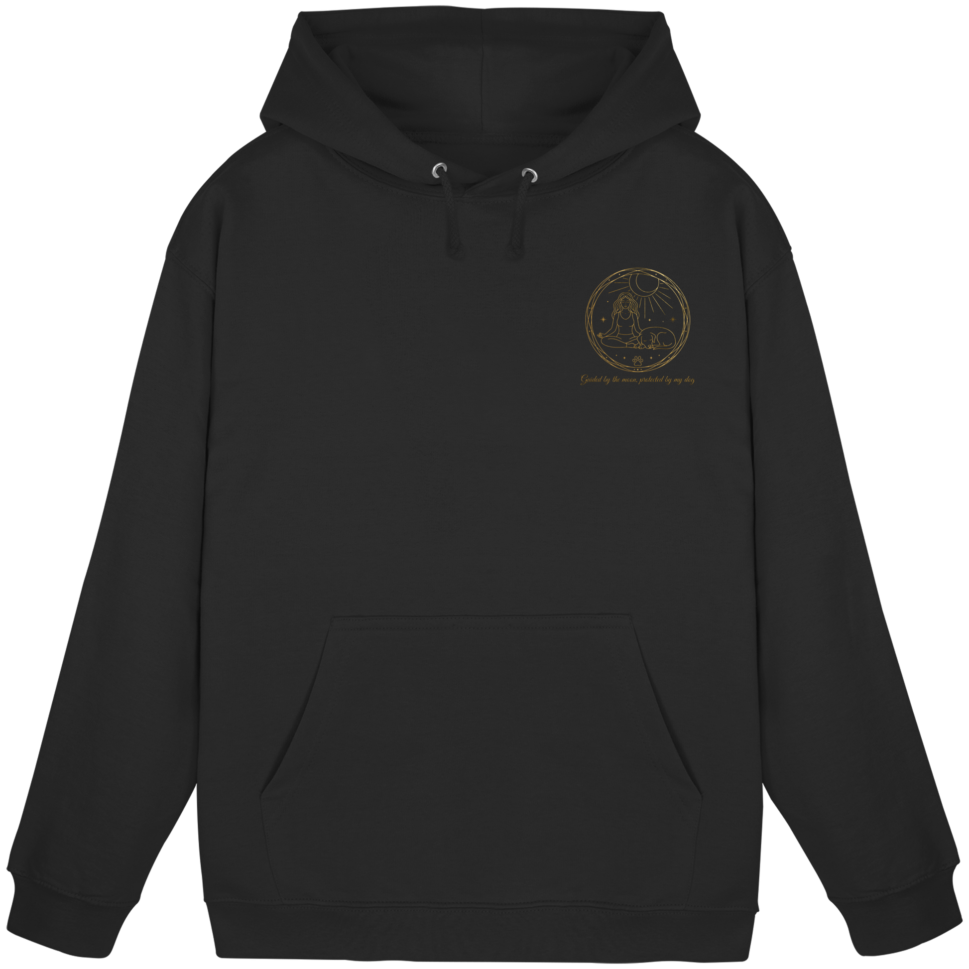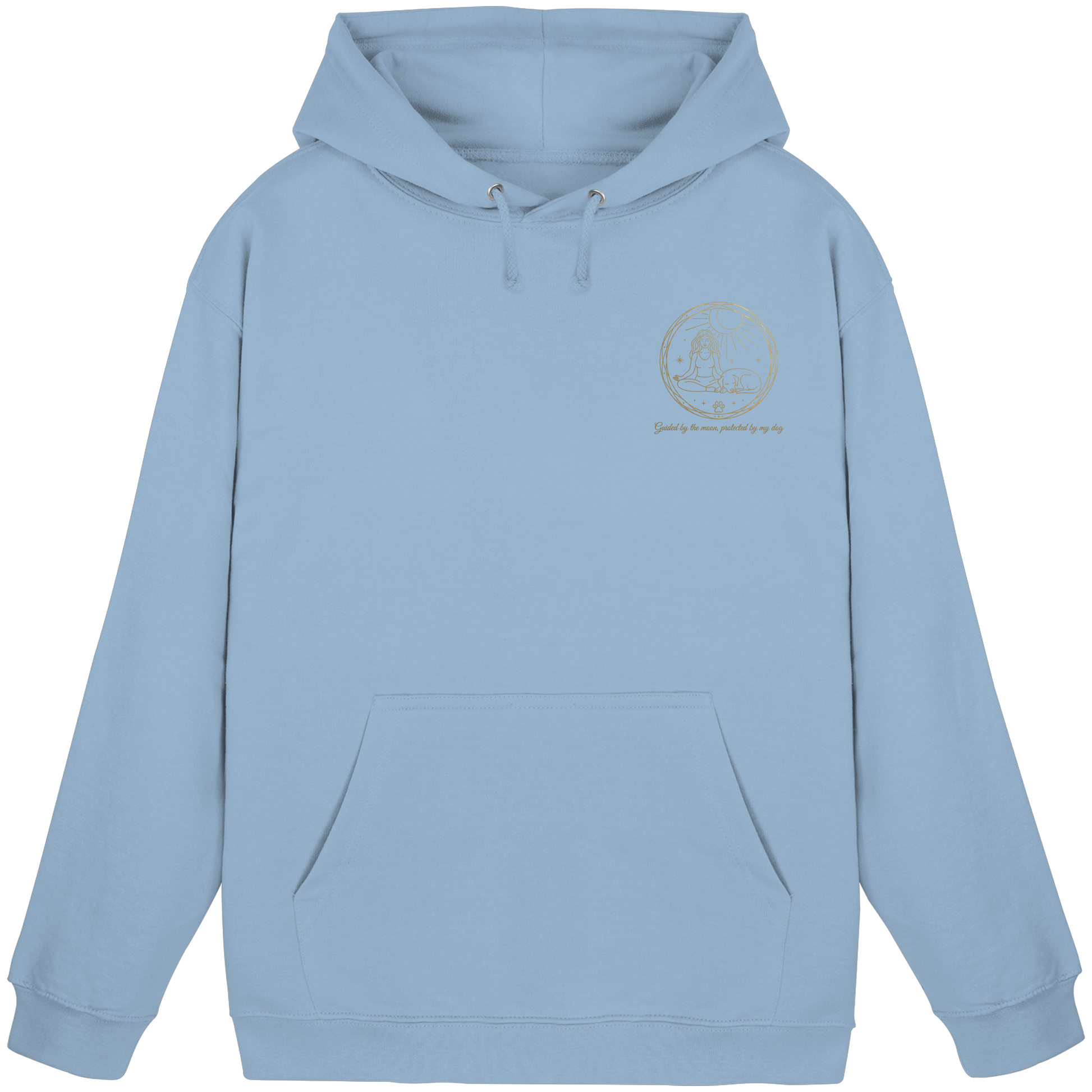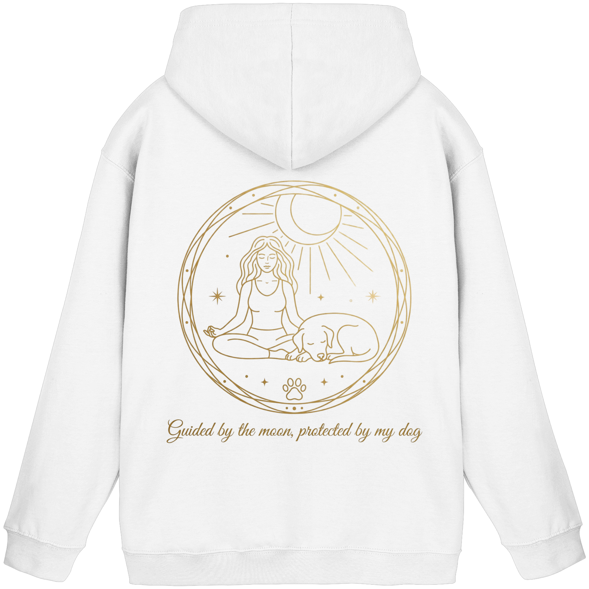 Premium Pfotenpoesie Unisex Hoodie Guided by the Moon, Protected by My Dog