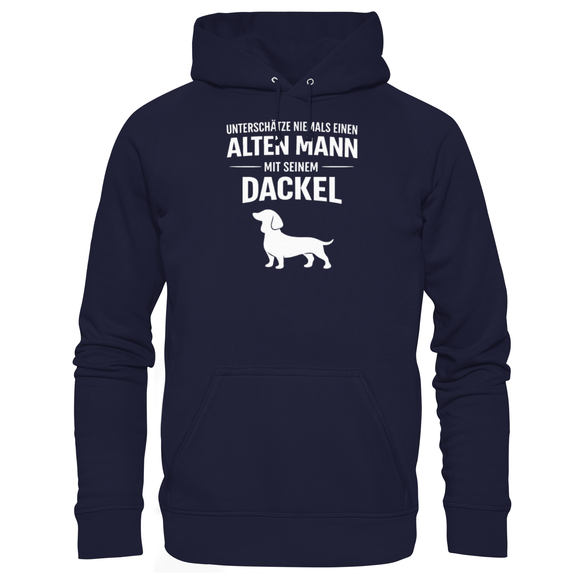 Premium Pfotenpoesie Hoodie Unterschätze niemals einen Alten Mann mit seinem Dackel