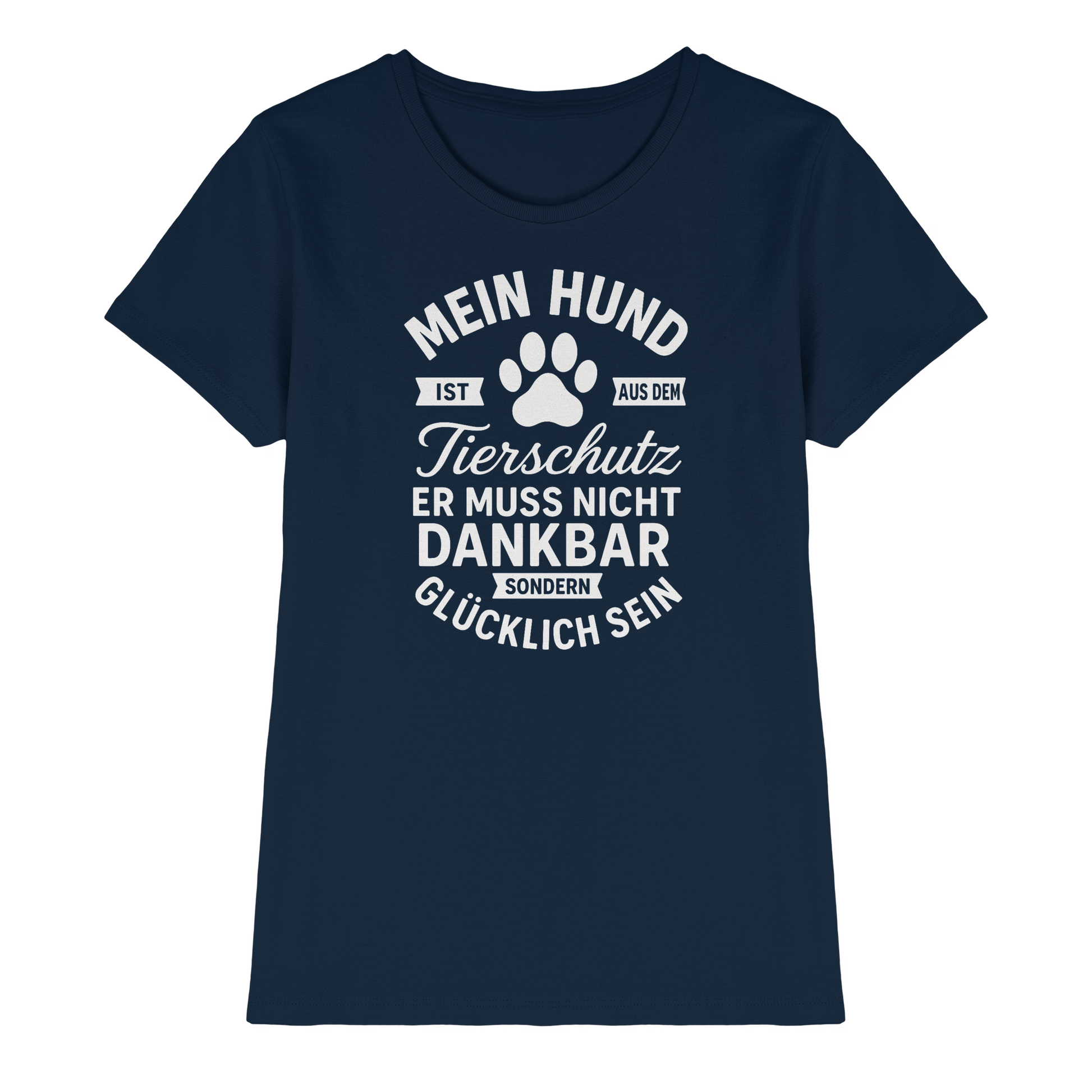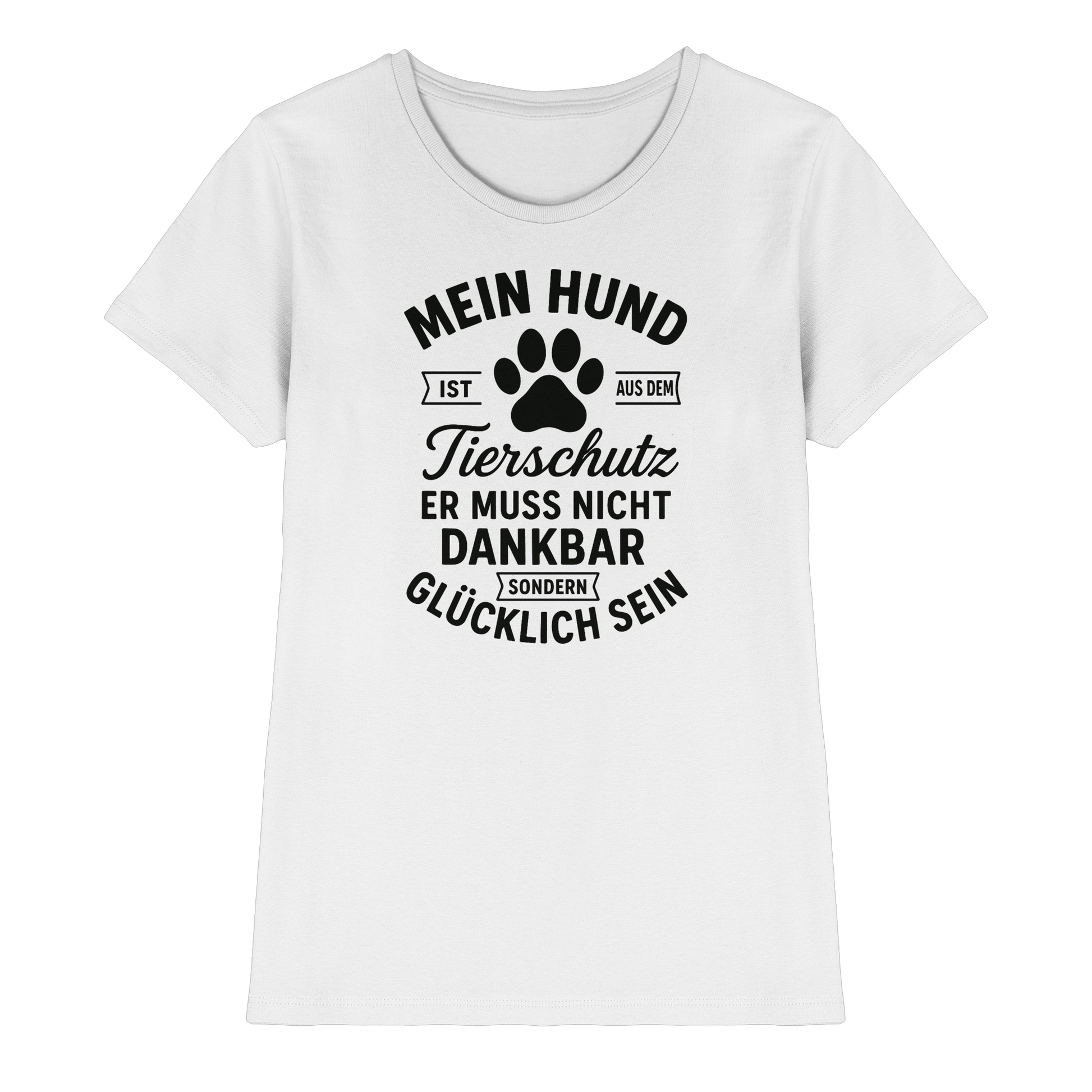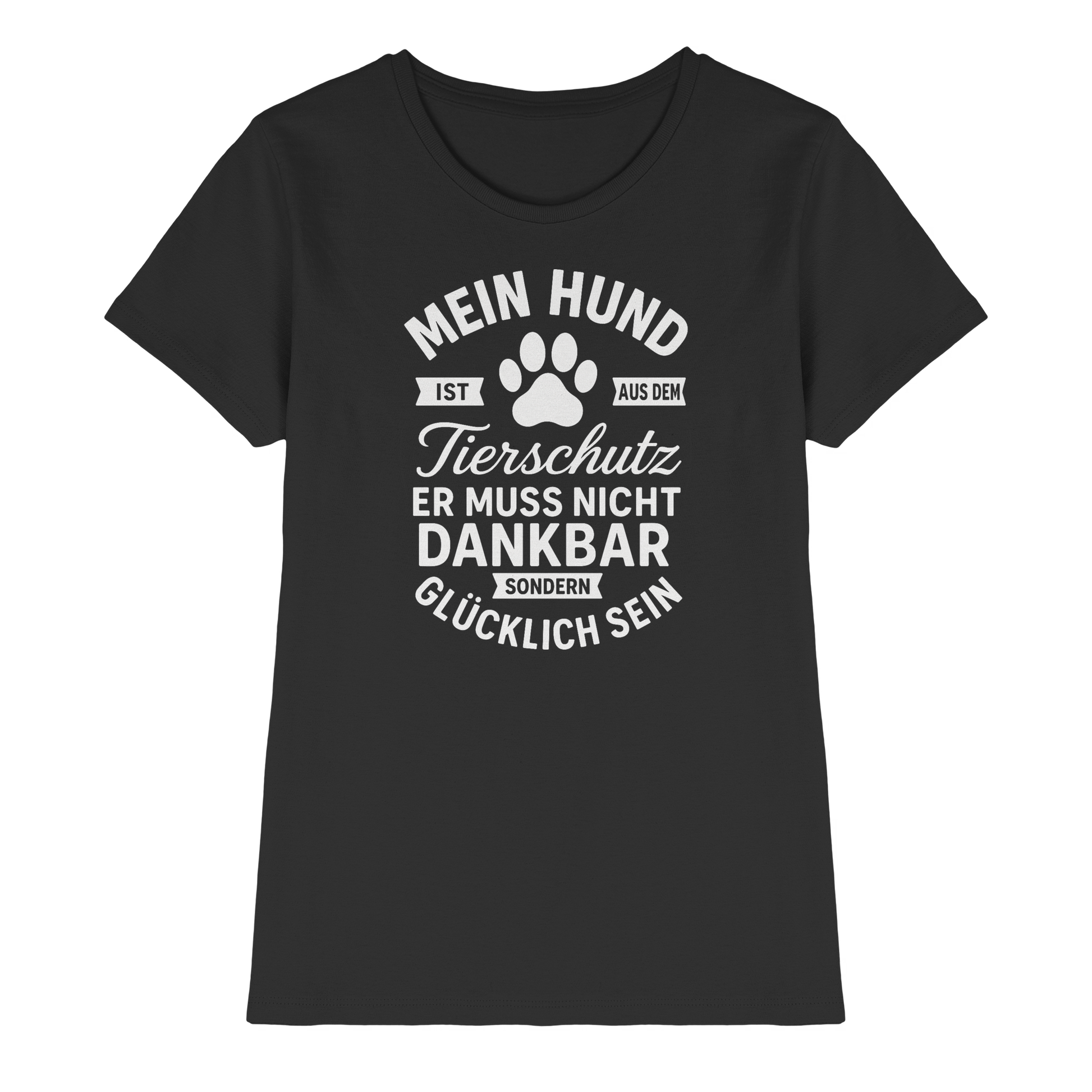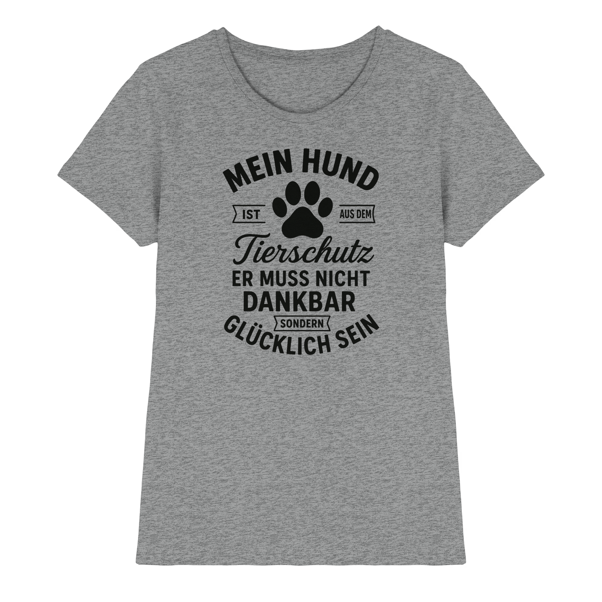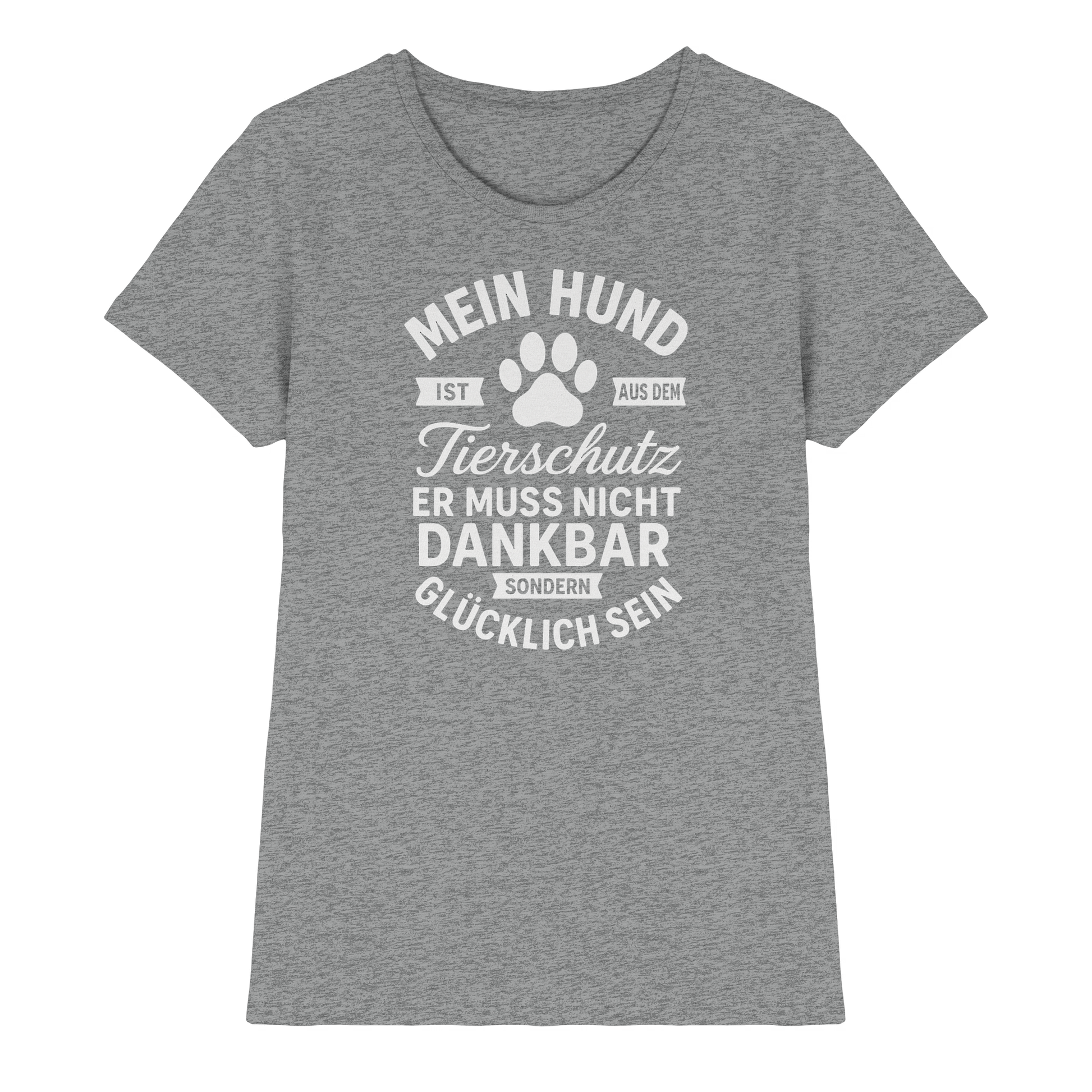 Mit unserem Shirt „Mein Hund ist aus dem Tierschutz – er muss nicht dankbar, sondern glücklich sein“ zeigst du, dass jedes Tier ein Recht auf Liebe, Sicherheit und ein glückliches Leben hat.