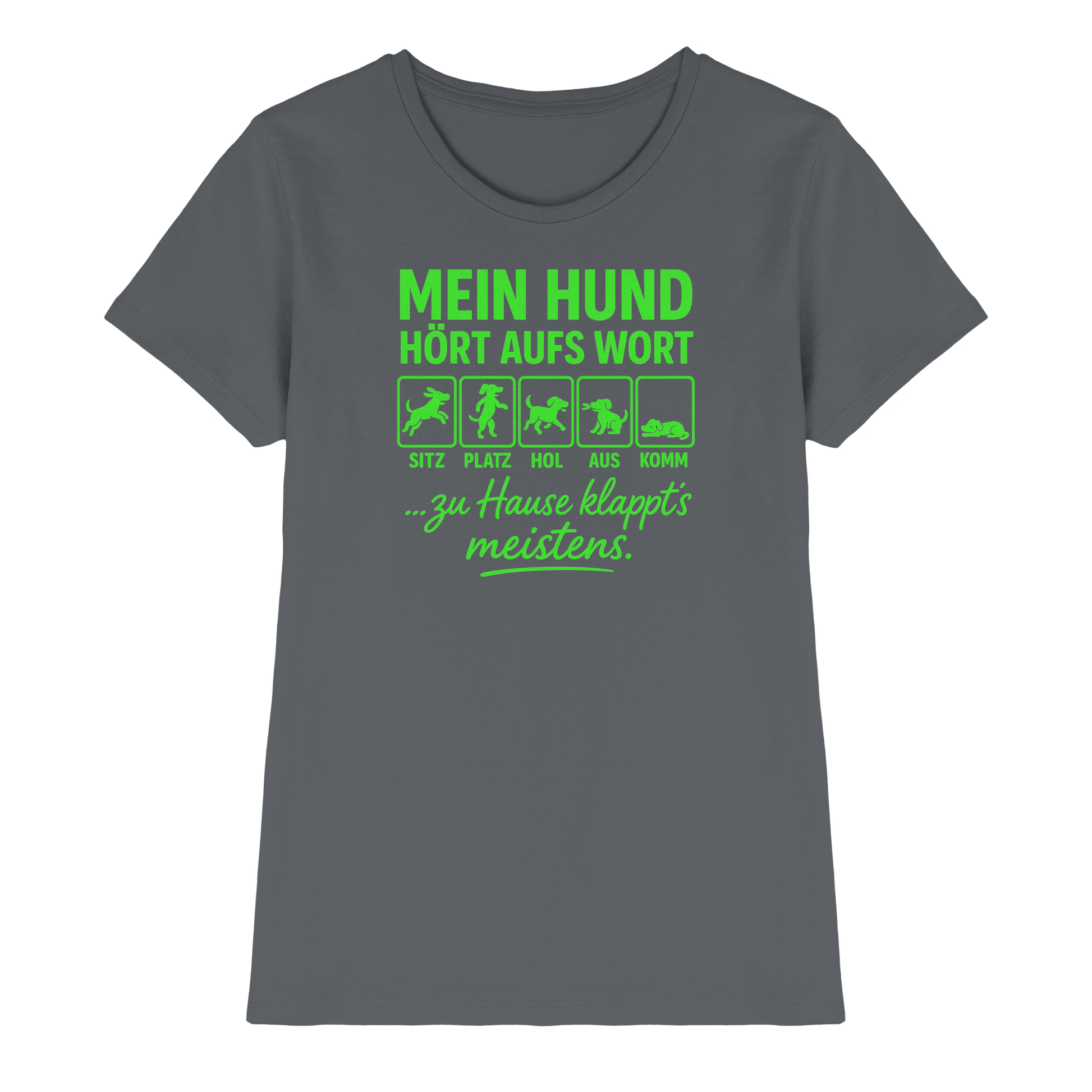 Unser Damen Shirt ist für alle Hundemamas, die wissen, wie es wirklich läuft. Draußen top erzogen – zu Hause eher wild? Genau dafür ist dieses Design gemacht.