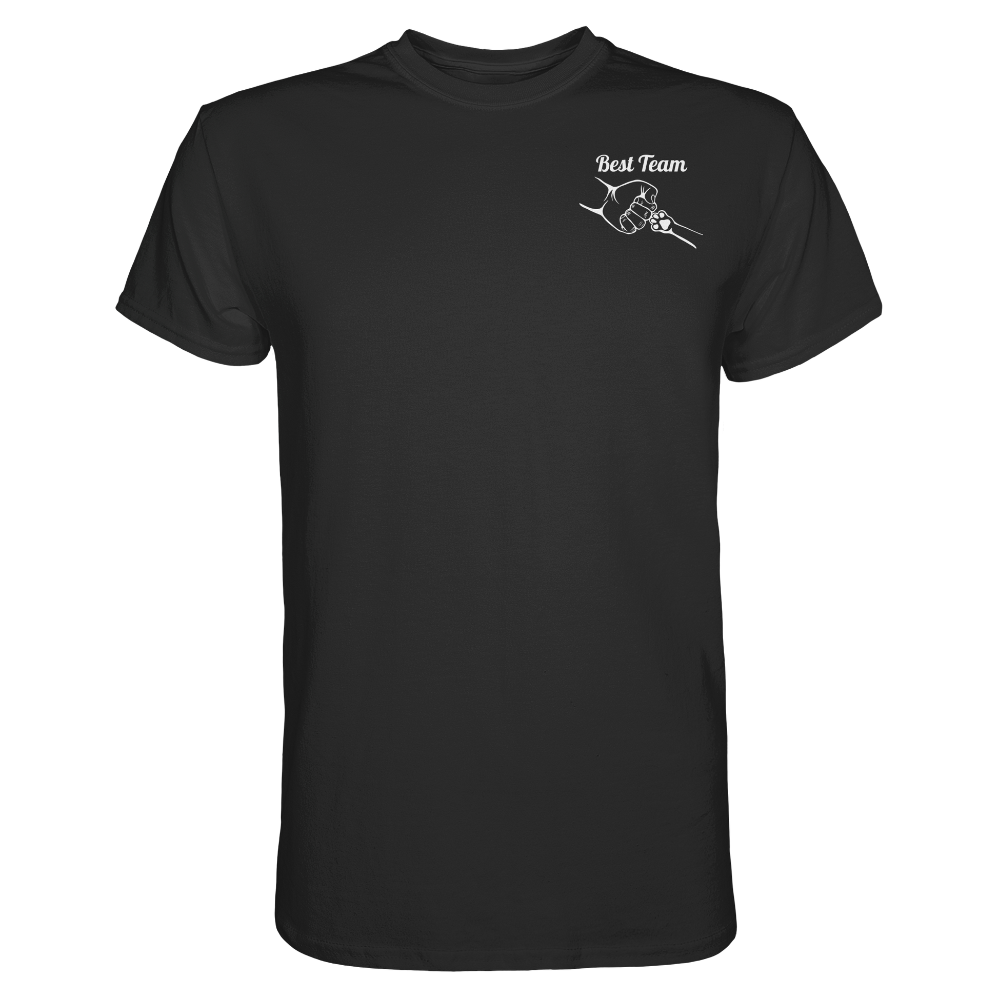 Dieses minimalistische „Best Team“ Shirt sagt alles, ohne viel zu sagen. Das Brust-Logo zeigt die ikonische Faust-und-Pfote-Geste – ein starkes Symbol für die besondere Freundschaft zwischen dir und deinem Hund. Dezent, stilvoll und ideal für alle, die ihre Verbundenheit gerne subtil, aber bedeutungsvoll zeigen möchten.