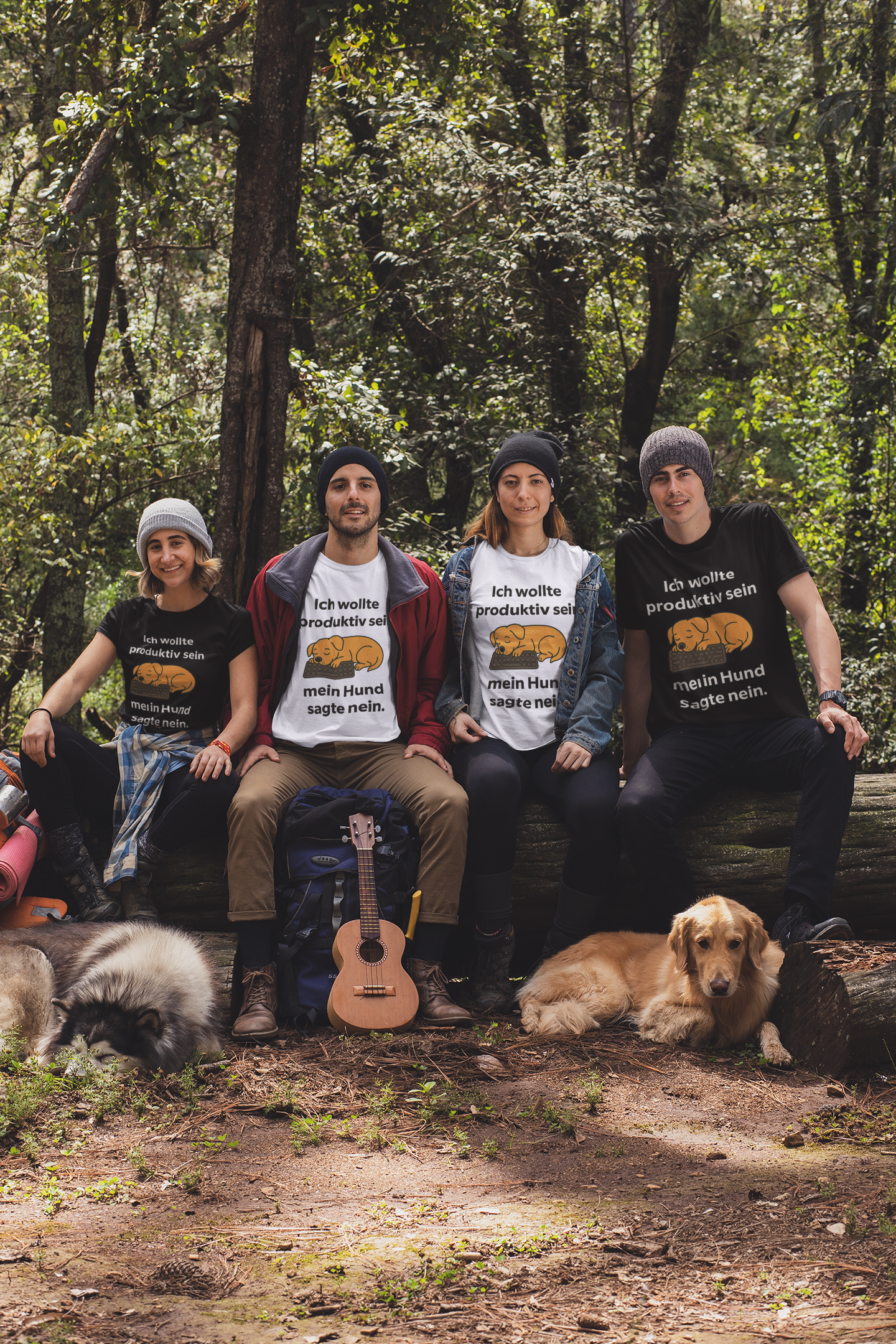 Mit Unserem Shirt zeigst du auf humorvolle Art, wie das Leben als Hundebesitzer wirklich läuft: Voller Liebe, Chaos und kleinen Vierbeinern, die deine Produktivität ganz charmant sabotieren.