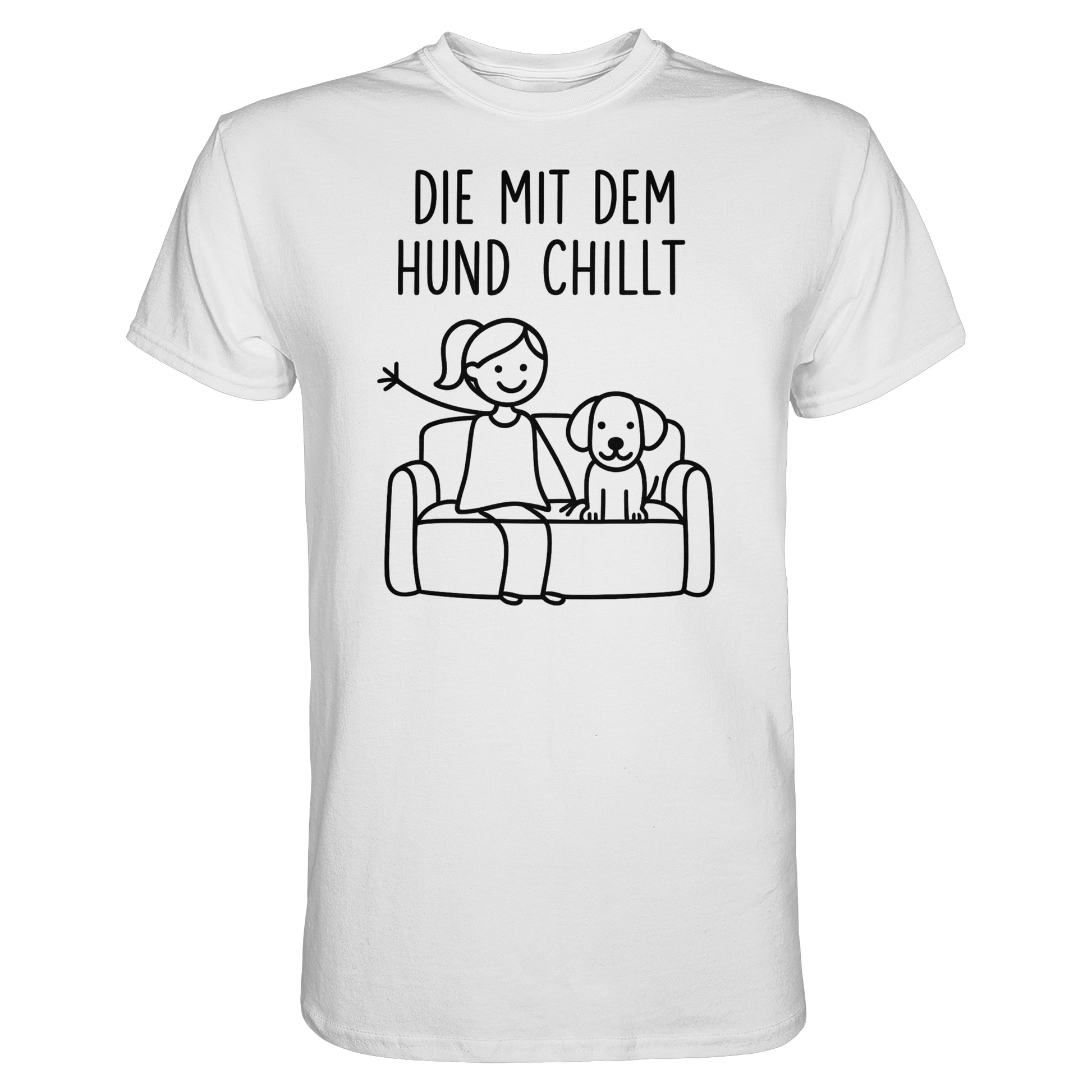 Locker, süß und voller Gefühl: Unser T-Shirt „Die mit dem Hund chillt“ ist das perfekte Statement für entspannte Hundemamas. Das minimalistische Motiv bringt eure besondere Bindung auf den Punkt – ruhig, liebevoll und absolut authentisch.
