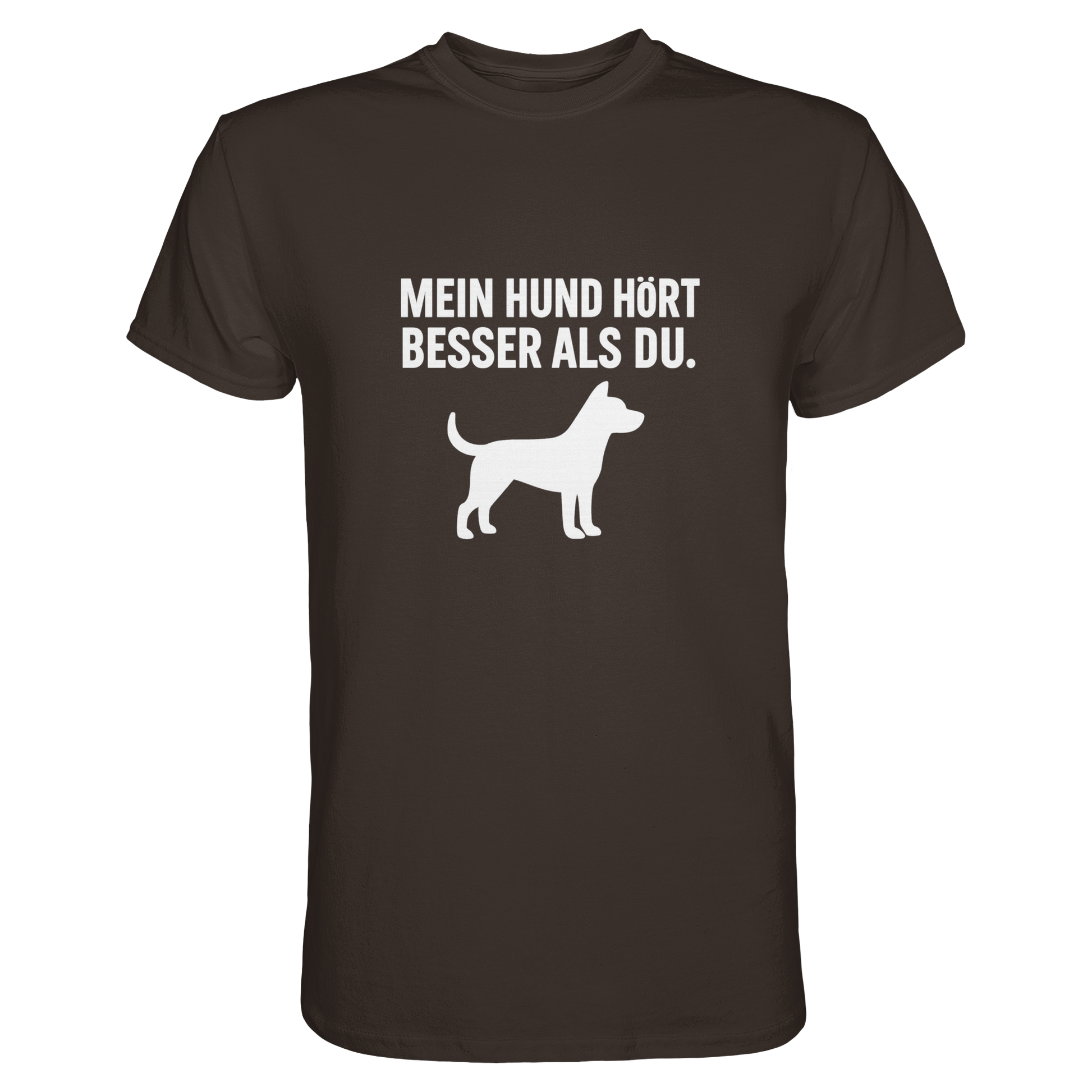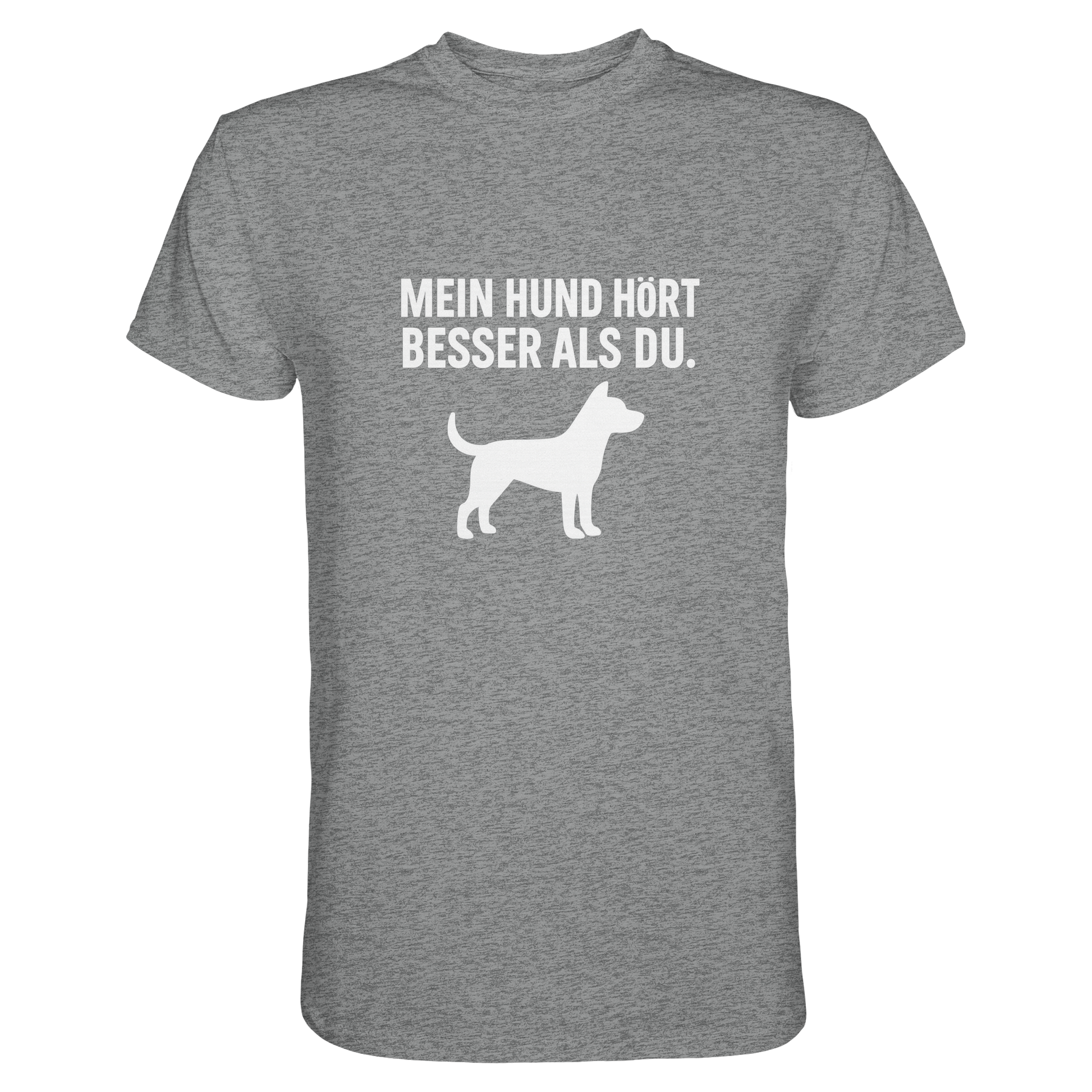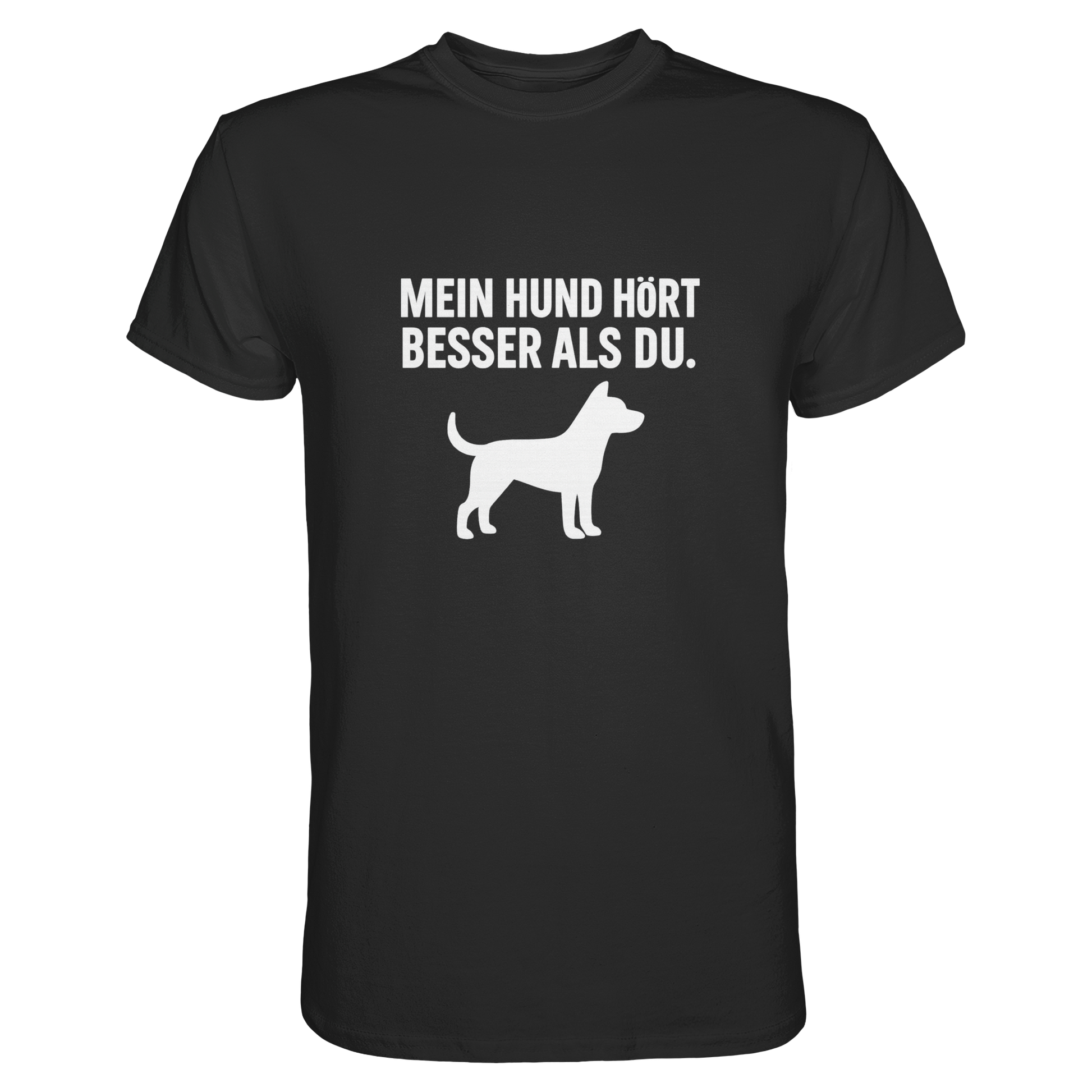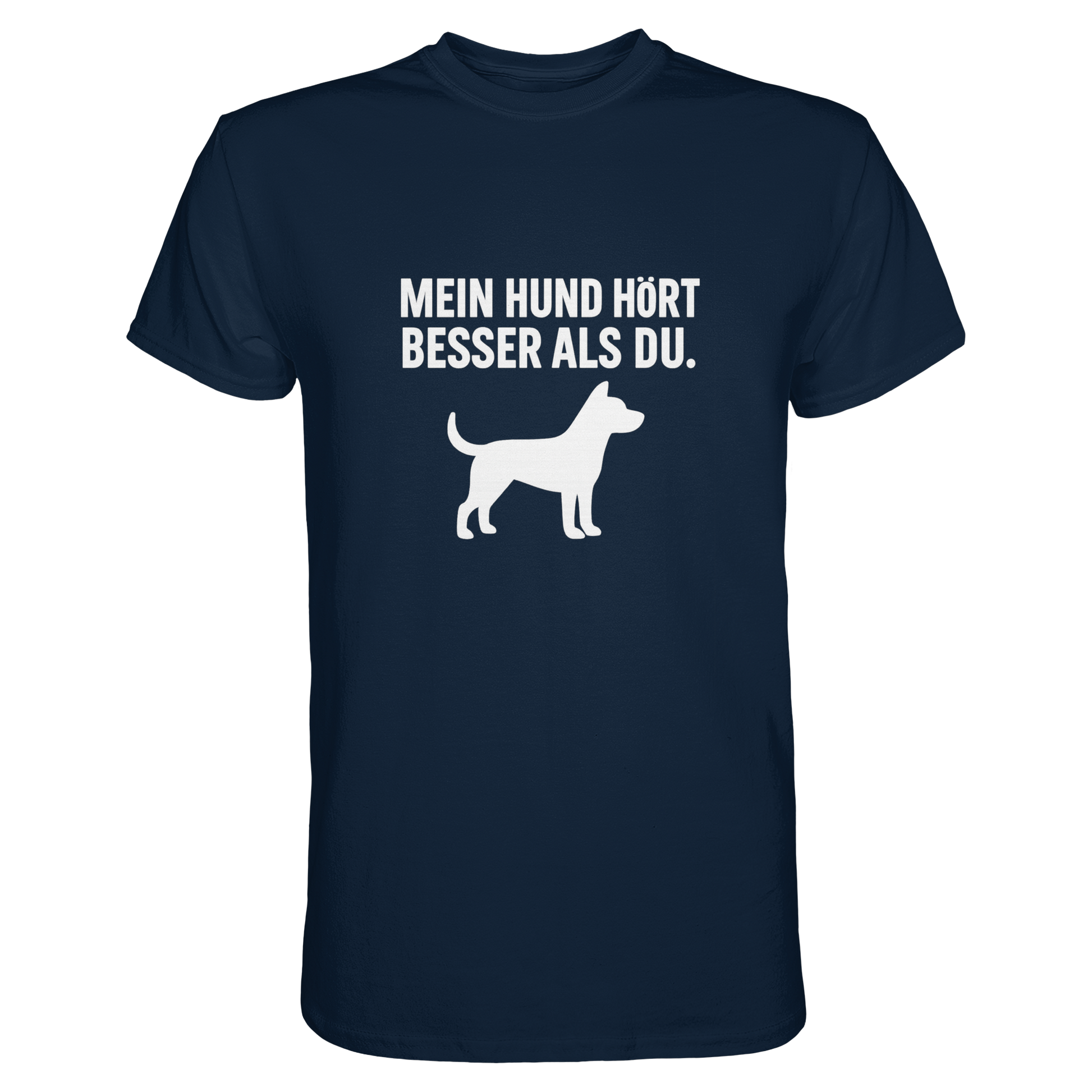 Mit unserem Shirt von Pfotenpoesie setzt du ein humorvolles Statement, das jeder Hundemensch sofort versteht: Mein Hund hört besser als du.