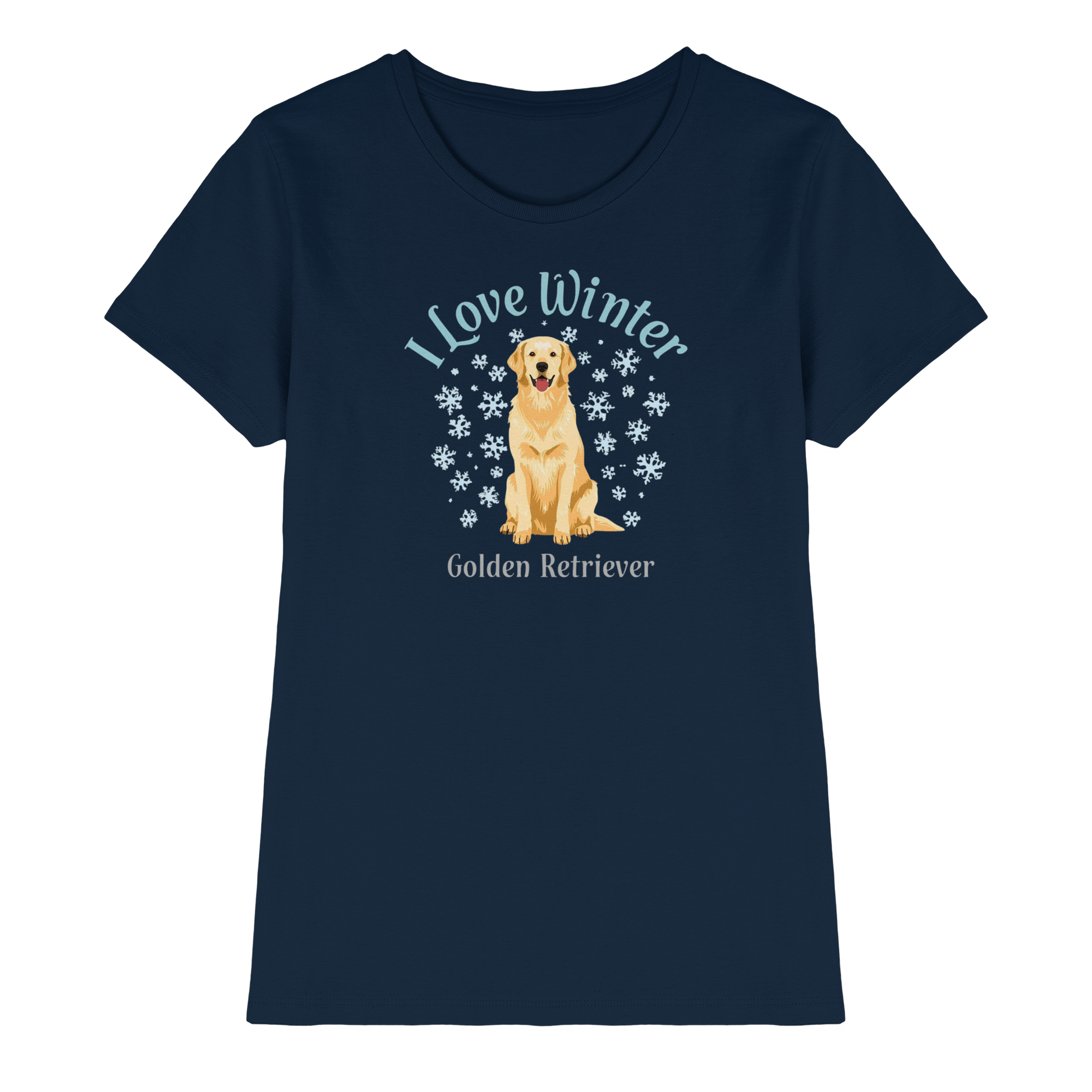 Für alle Golden-Retriever-Fans, die den Winter genauso lieben wie ihre Fellnase! Dieses liebevoll gestaltete T-Shirt zeigt einen fröhlichen Golden Retriever umgeben von funkelnden Schneeflocken – ein perfektes Winter-Statement für Hundebesitzer*innen.