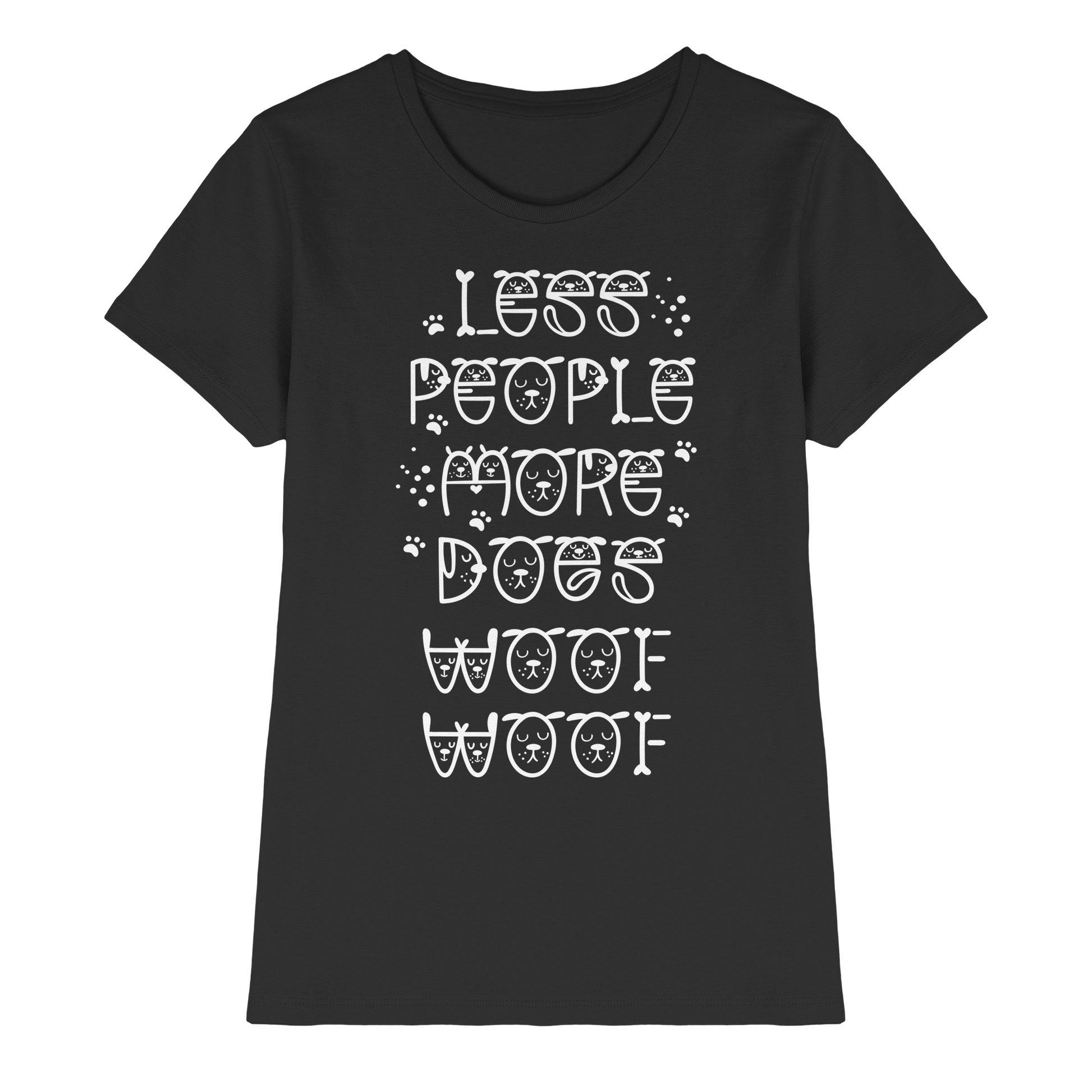 Mit Unserem Shirt „Less People – More Dogs. Woof Woof“ setzt du ein humorvolles Statement für alle, die wissen, dass Hunde die besten Begleiter sind. Ob beim Spaziergang, im Alltag oder beim Treffen mit Freunden – dieses Design bringt deine Einstellung charmant und witzig nach außen.